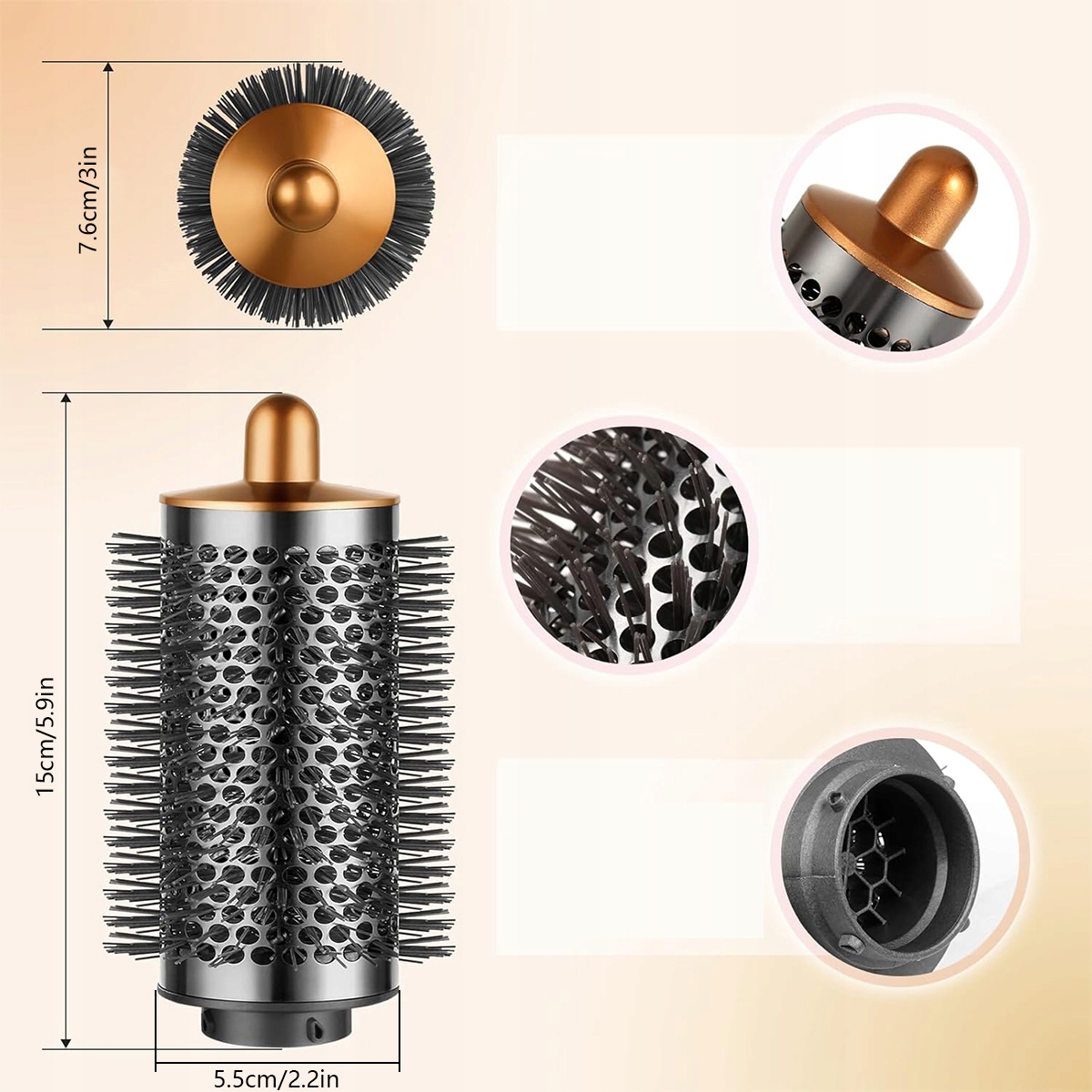 Вдосконалена велика кругла щітка, яка дає об'єм Dyson Airwrap HS01 HS05, пензлик, яка дає об'єм плоскому волоссю (сірого золота)