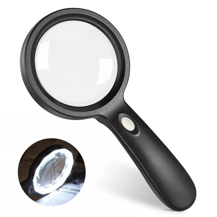 Велике збільшувальне скло зі світлодіодним склом є ідеальним інструментом для всіх, хто потребує чіткого збільшення зображення. Цей скляний об'єктив дозволяє обережно виглядати освітленням , що дозволяє працювати навіть при слабкому освітленні. 4