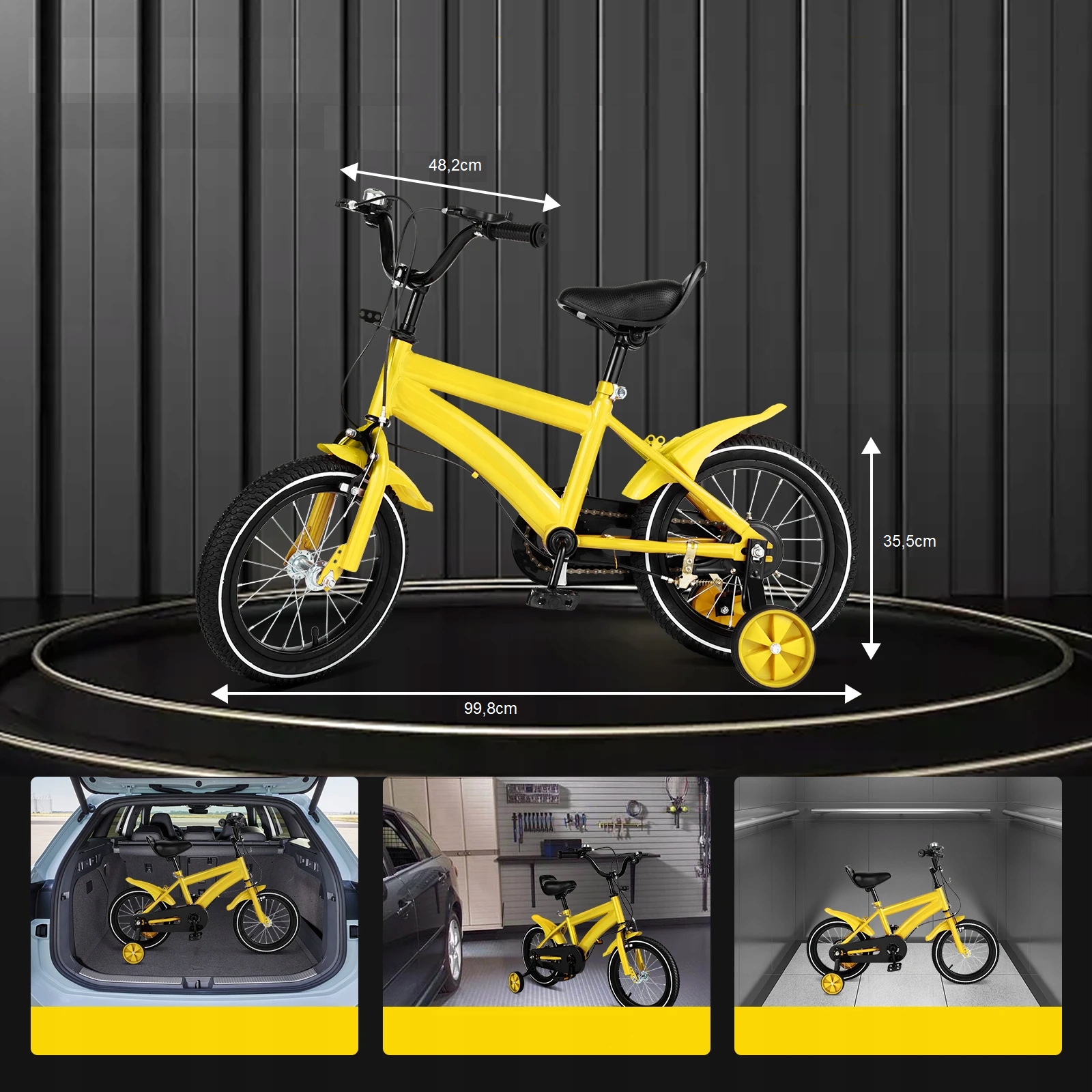 Велосипед оснащений двома допоміжними колесами, які стабілізують їзду та запобігають падінню. Вони є надзвичайно корисним і популярним аксесуаром, особливо для найменших велосипедистів-початківців.