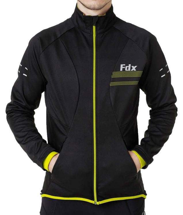 Fdx Arch — одна з найтепліших велосипедних курток. Виготовляється з мембрани софтшел. Це забезпечує нам захист від вітру та легкого дощу. Якщо ви плануєте кататися в осінньо-зимовий сезон, ця куртка дозволить вам це зробити і захистить вас від несприятливих погодних умов. Чорний жакет з жовтими вставками.