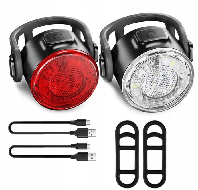 - Двофункціональний набір: білий передній ліхтар і червоний задній ліхтар для повного освітлення велосипеда.