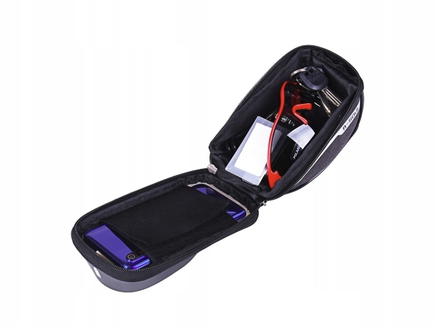Водонепроникна сумка для рами велосипеда, корисна кожному велосипедисту. Маленька зручна сумка, в якій можна сховати дрібні аксесуари, такі як телефон, ключі, гаманець. Завдяки цьому рішенню нам не потрібно брати додатковий рюкзак чи сумочку з нами. Сумка послужить нам і місцем для зберігання підручних речей, і водночас чохлом для телефону.