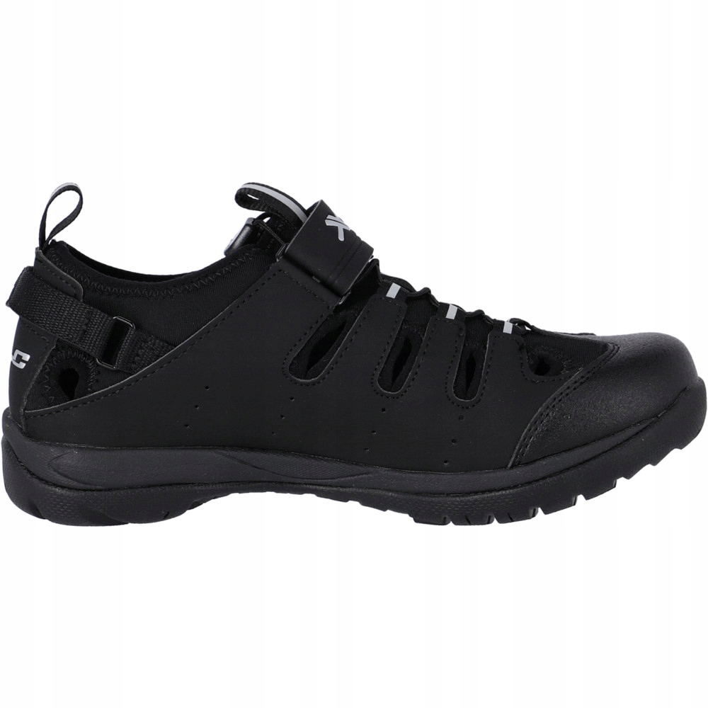 Трекінгові сандалі XLC, які оснащені гумовою підошвою, сумісною з системою SPD. Пальці посилені для їх захисту. Взуття оснащене 10 отворами, які покращують вентиляцію повітря, полегшуючи ноги в спекотні дні. Дві стрічки на липучці дозволяють регулювати структуру взуття відповідно до ваших потреб і комфорту. Сандалі бренду XLC також мають світловідбиваючі елементи, які забезпечують безпеку, покращуючи видимість на дорозі. Доступний для продажу у версії унісекс чорного кольору.