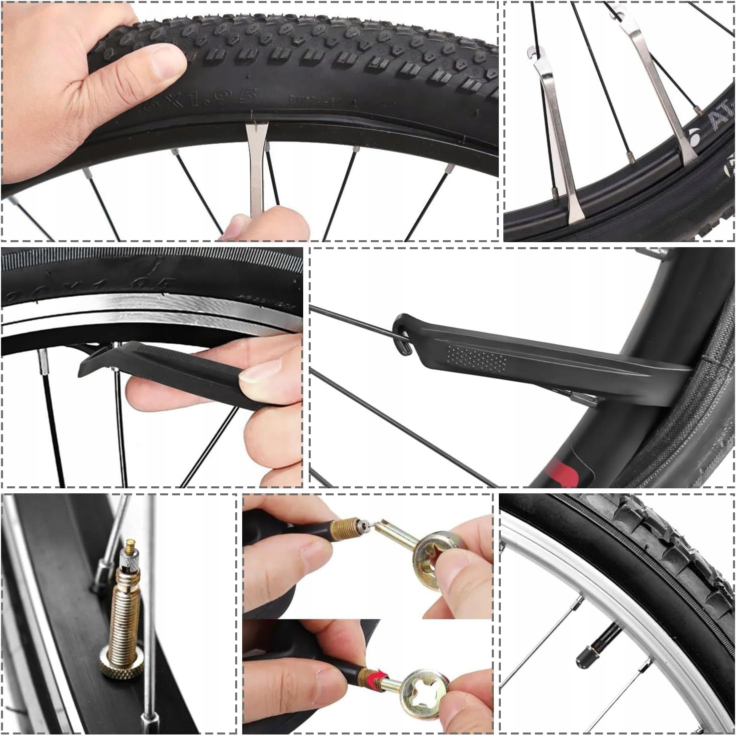 🛠 Велосипедний інструмент 16 в 1: комплект з ремонту відмови (3 важелі шини / 2 нейлонових шин / 12 патчів на шинах / 1 металева шина), 2 вставки клапана, 1 клавіша гончака для клапанів, 2 гумові смуги / 1 чорний мішок для зберігання. Оскільки фабрика перебуває під тимчасовим тиском виробництва, у сумці є 2/3 кількості в журналі -селекції велосипедних символів та світловідбиваючі смуги. Якщо ви отримуєте 1/3 без символів і смужок, але ви все ще хочете, попросіть замінити журнал Amazon. 10/мм, плоска викрутка, тевтонська викрутка, ремінь рукав, плоска клавіша 8/10/мм, ключ до szpokych/14ge, клавіша Allen 2/25/4/5/5/6 мм. P> 🛠 Виготовлений з високоякісного матеріалу, довговічного, повністю функціонального, компактного та легкого, легкого для перенесення. Вони також можна використовувати окремо як щоденний інструмент для ремонту в домашньому господарстві.