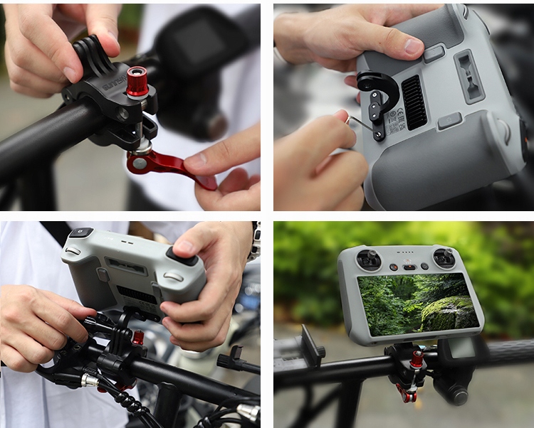 Інноваційний тримач контролера дрона DJI, який дозволяє розмістити контрольне обладнання на кермі велосипеда. Це дозволяє зручно керувати дроном навіть під час водіння.