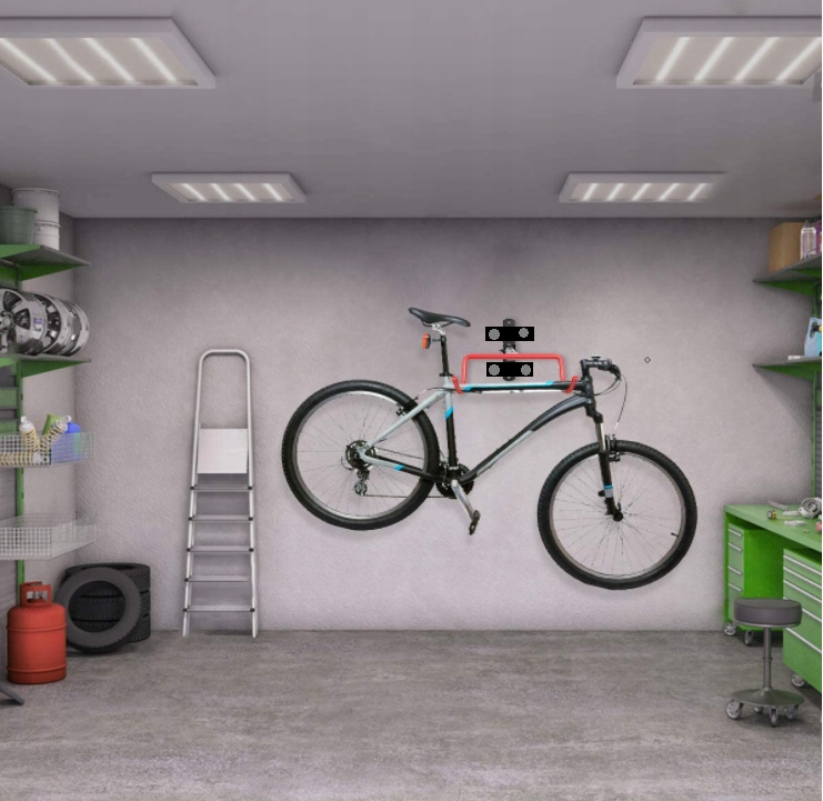 Він дуже СТАБІЛЬНИЙ, оскільки збирається за допомогою 2 розширювальних шпильок і 2 гвинтів. Тому вам не доведеться хвилюватися, що велосипед впаде. Пропонована вішалка є МІЦНОЮ, її вантажопідйомність до 30 кг