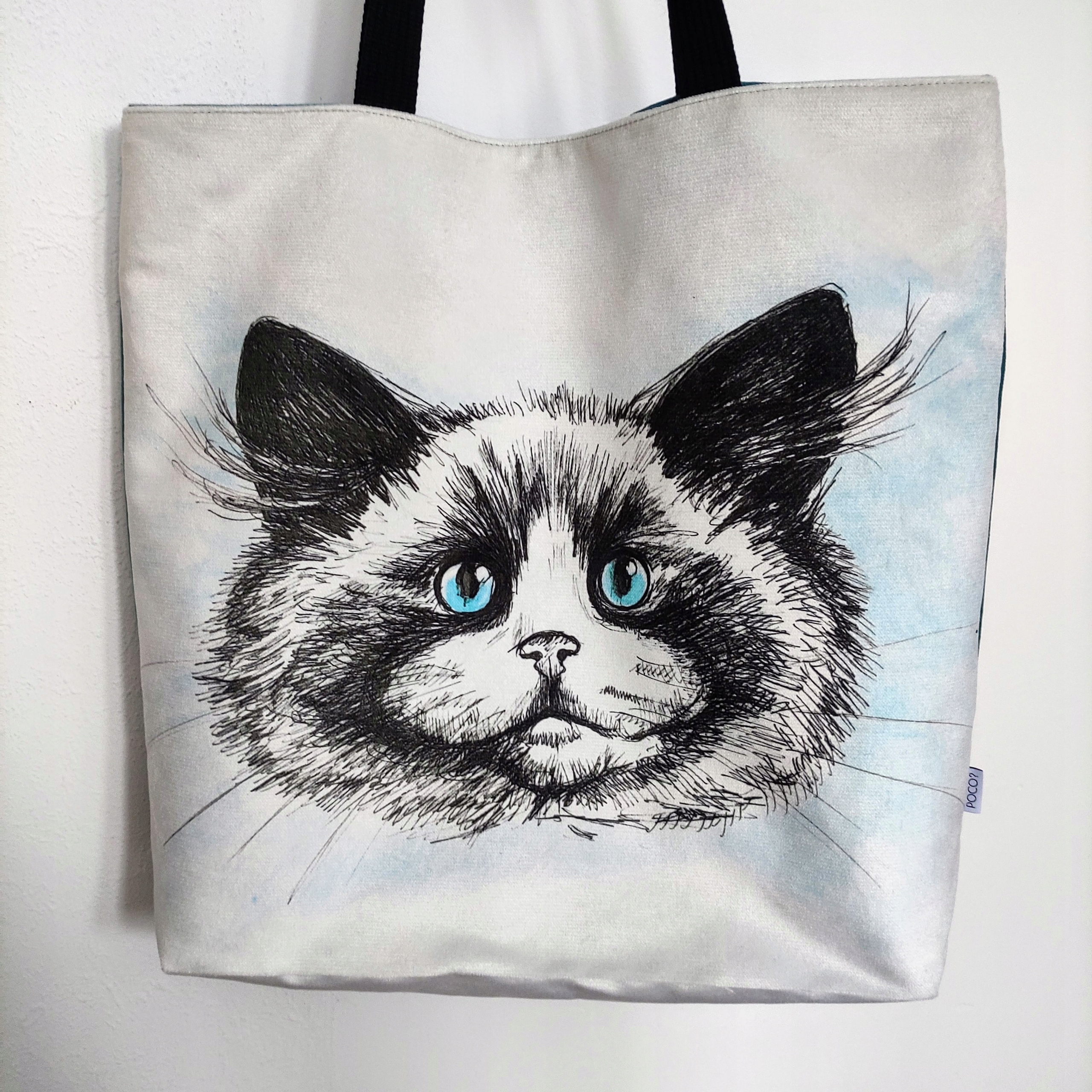 Велюрова сумка, покупця 50х50 см з друком із зображенням білої кішки! Роздрукування виготовлений у велорі, дуже міцному методі сублімації, який гарантує тривалий термін експлуатації сумки. Ручки виготовлені з міцної бавовняної стрічки - довжиною близько 65 см.