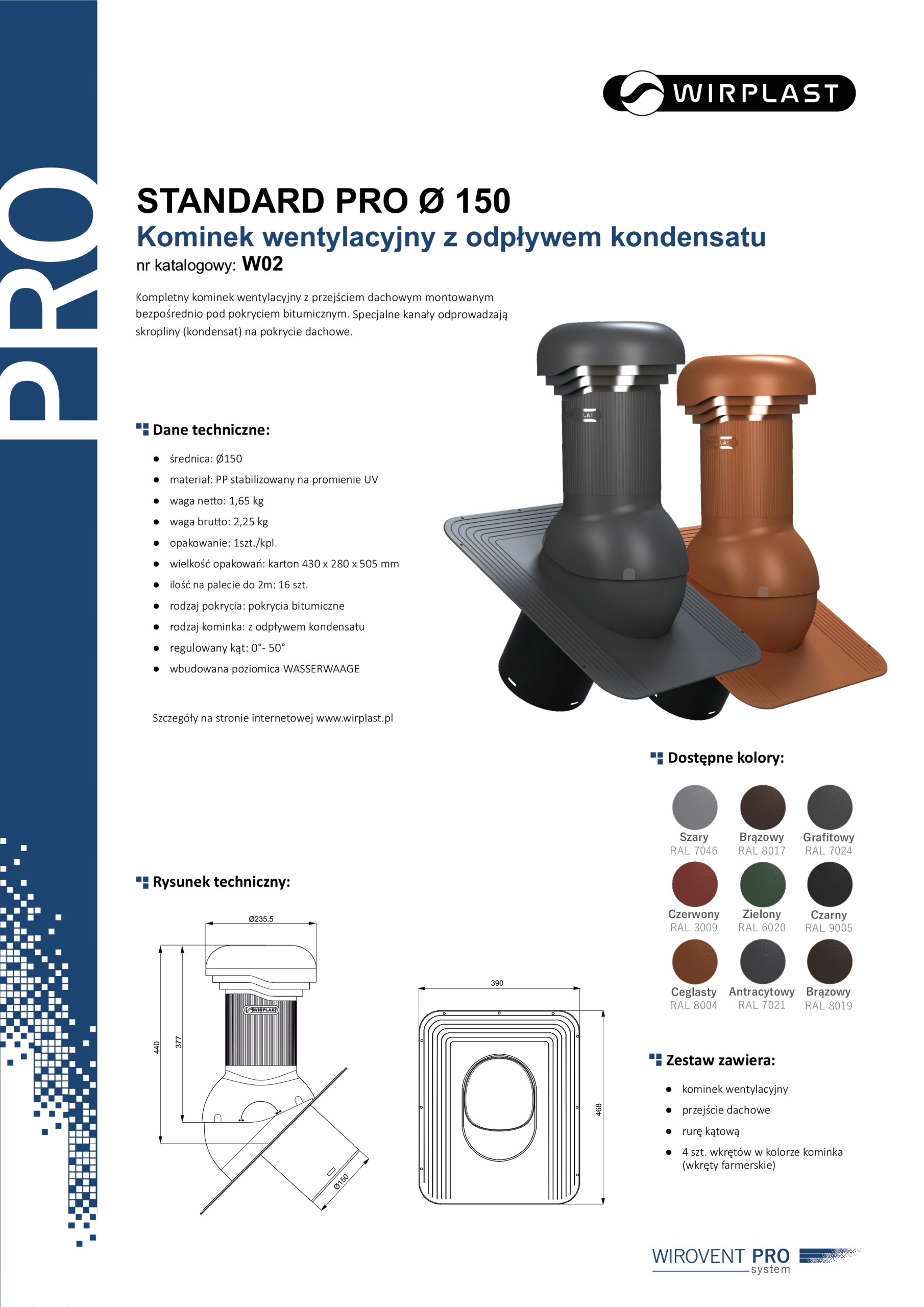 Вентиляційний камін з дренажом Wirplast 150 мм під бітумічним шинком Pape Gont