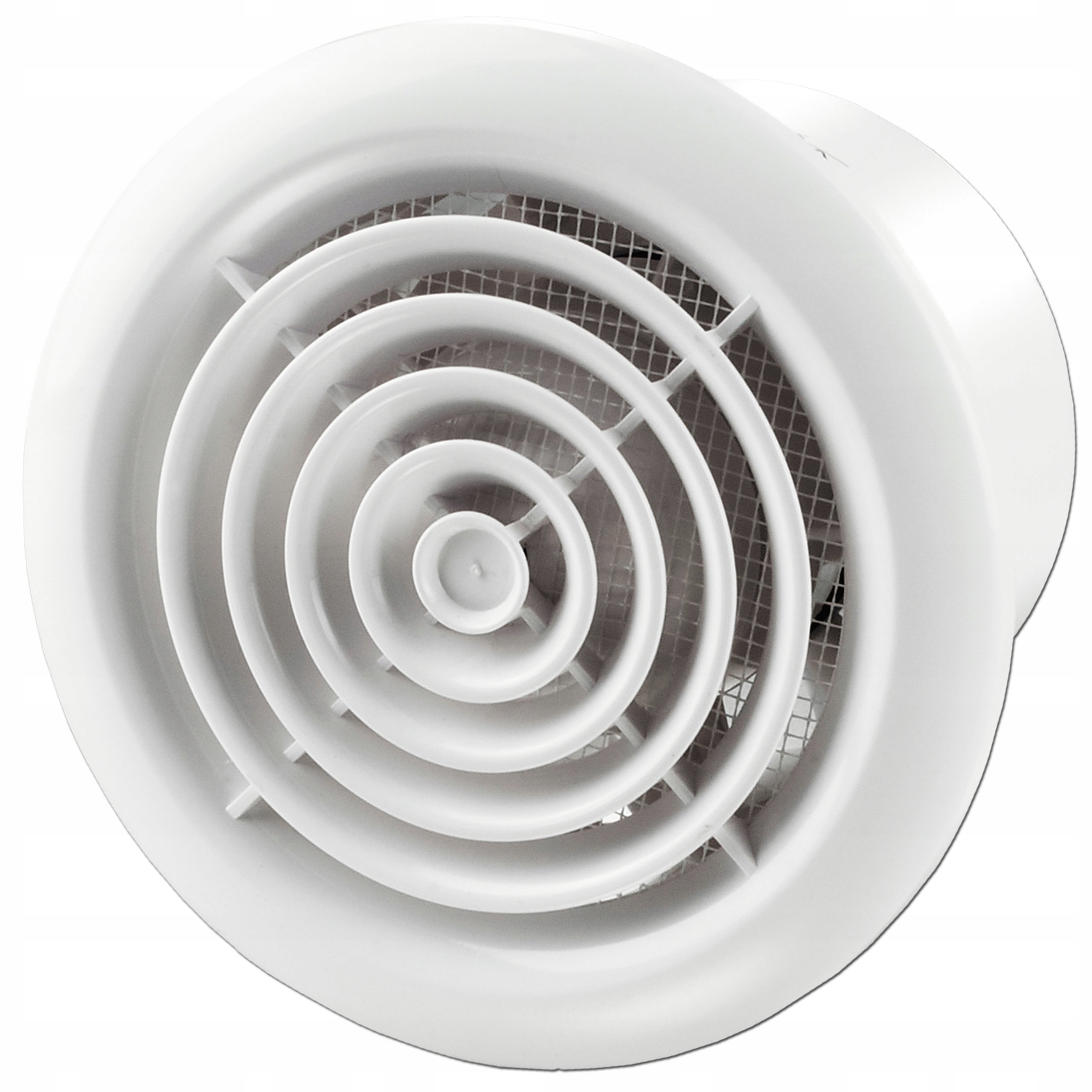 Кругла передня панель з концентричним розташуванням отвори полегшують розподіл повітря під час монтажу, вентилятор має сітку проти комах.