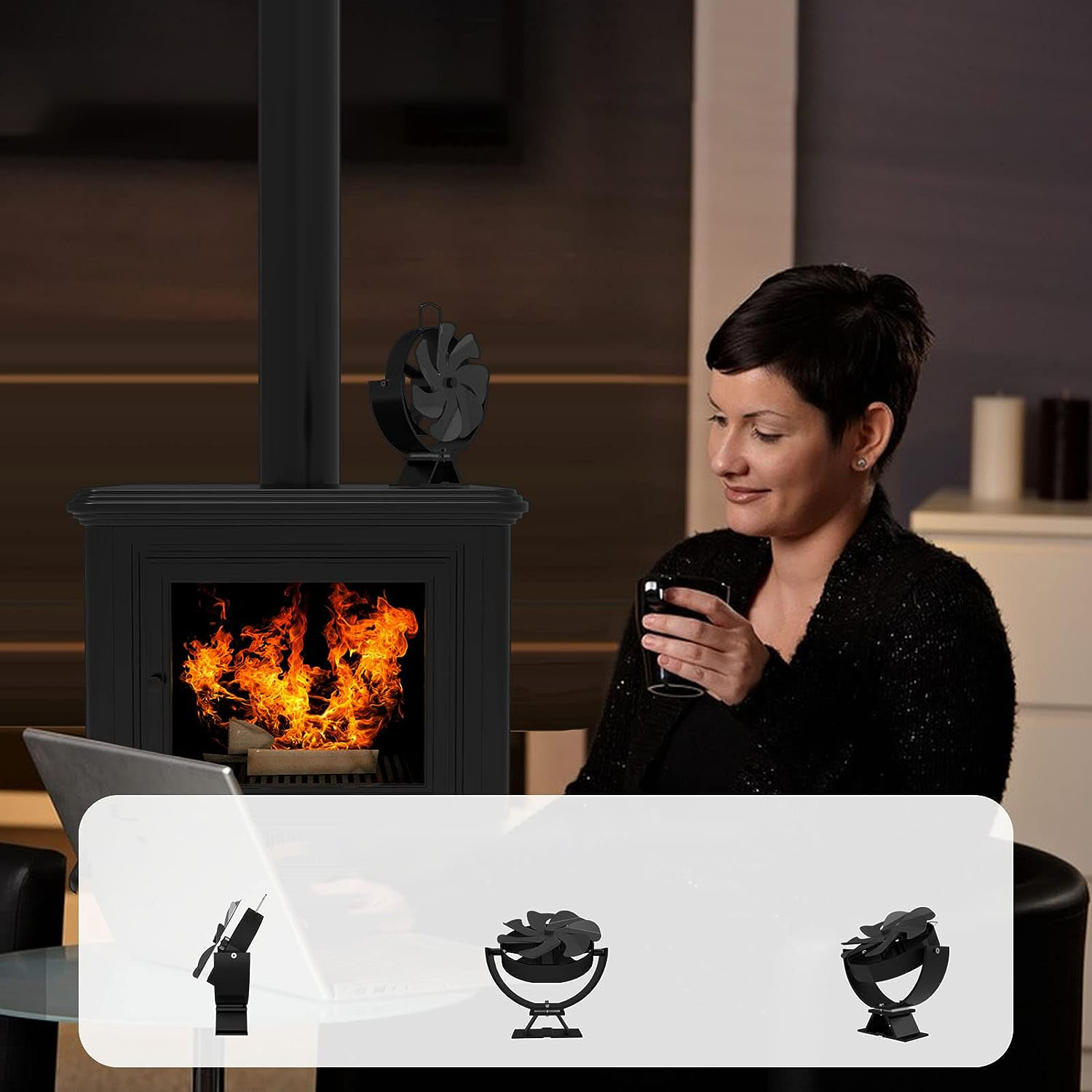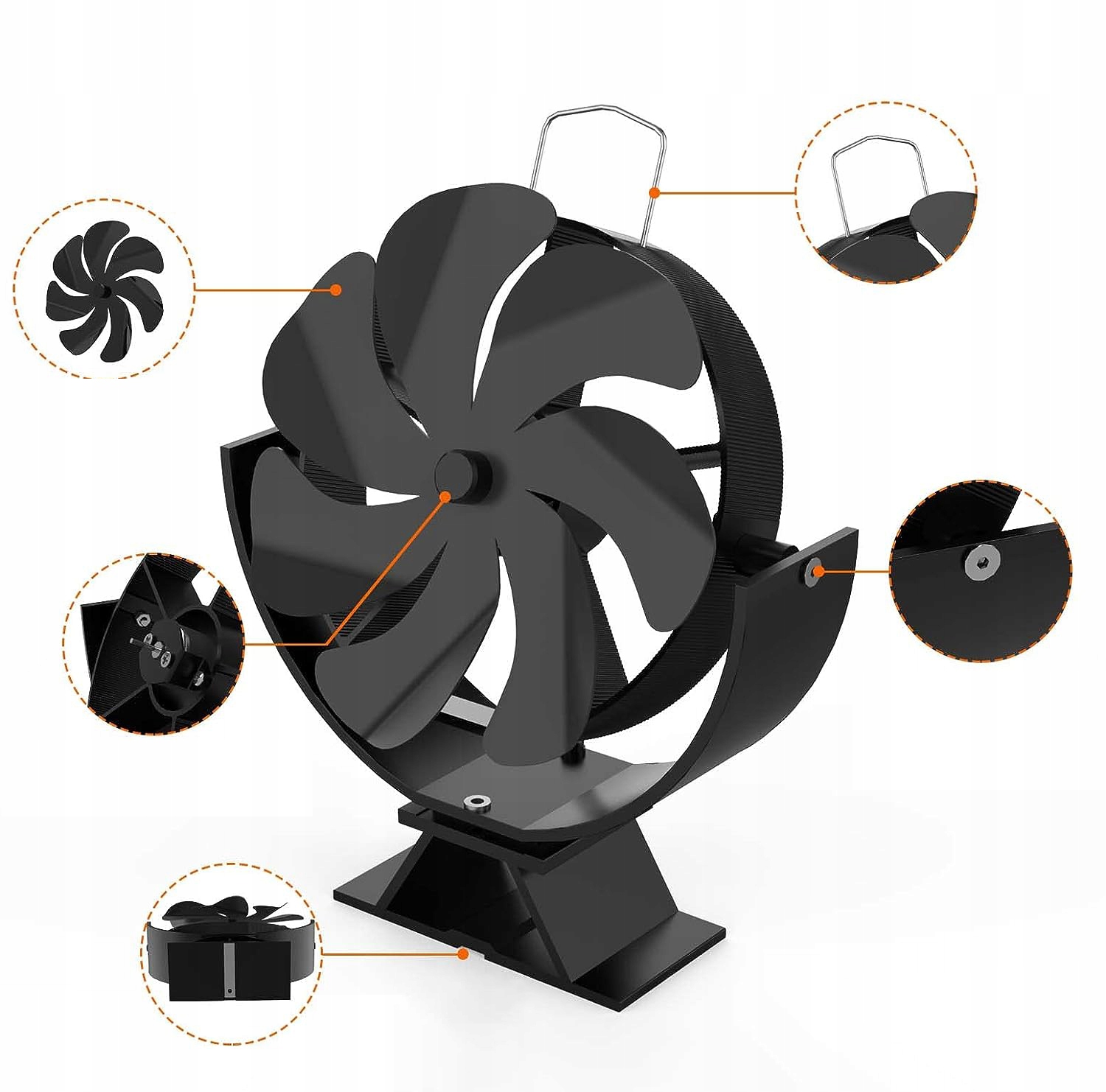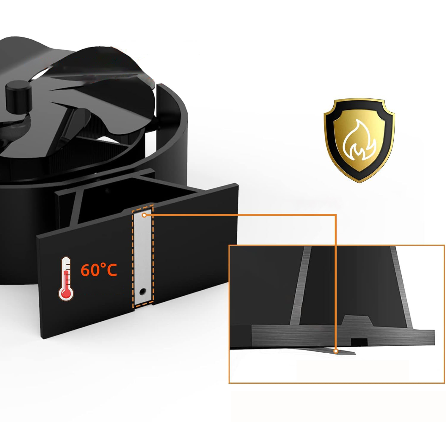 Порівняно зі звичайним 4-лопатевим вентилятором для каміна, збільшений повітрозабірний отвір, вища швидкість і більший об’єм повітря, теплова ефективність енергія збільшується на 20%, що економить більше палива.