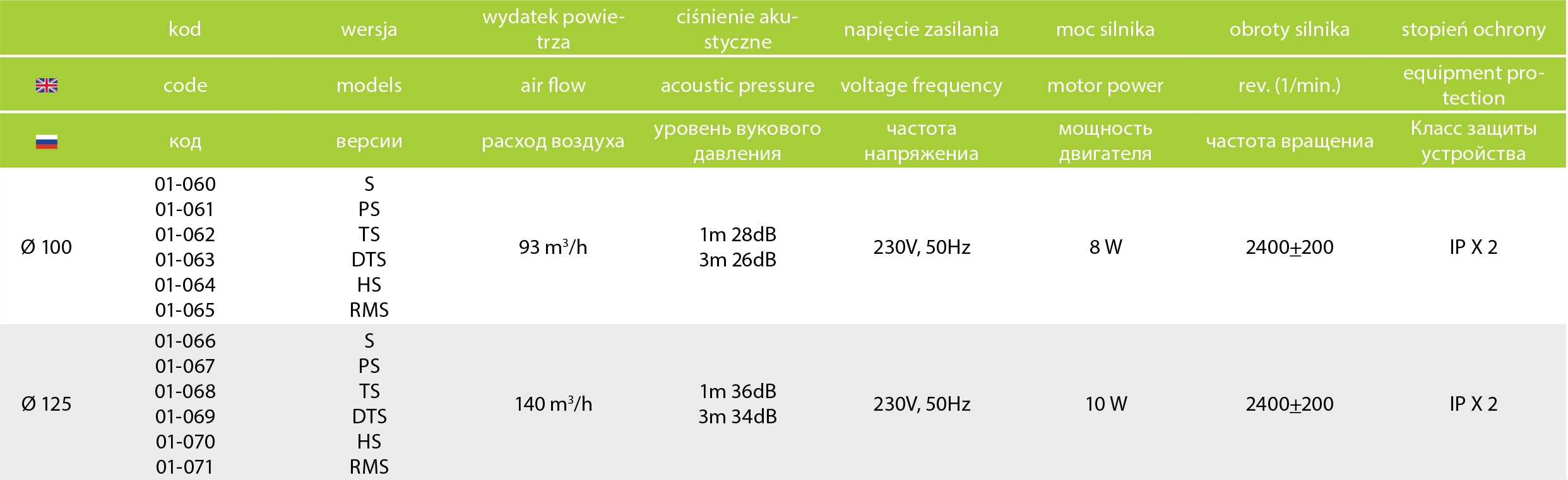 - Спеціально розробленої, аеродинамічної форми ротора із змішаним потоком забезпечує високу ефективність та низький рівень шуму