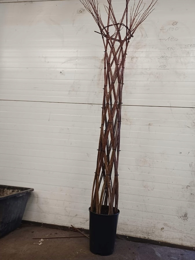 Плетену вербу виготовляють вручну з понад 40 шматочків верби, яка виглядає казково практично цілий рік, ранньою весною наповнена красивими, чарівними кетягами, а згодом створює пишне зелене мереживо, яке любить різати, тож ми можемо створювати в саду чи на терасі казкові форми.