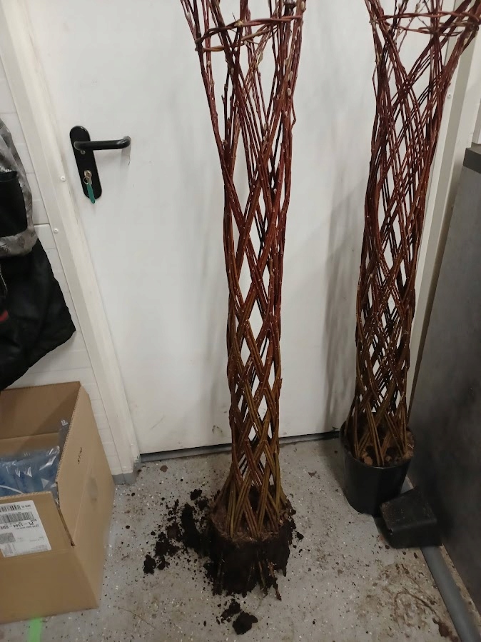 Верби регулярно сплетені та скріплені затискачами (трет-стяжками), які потрібно зняти через місяць посадка.