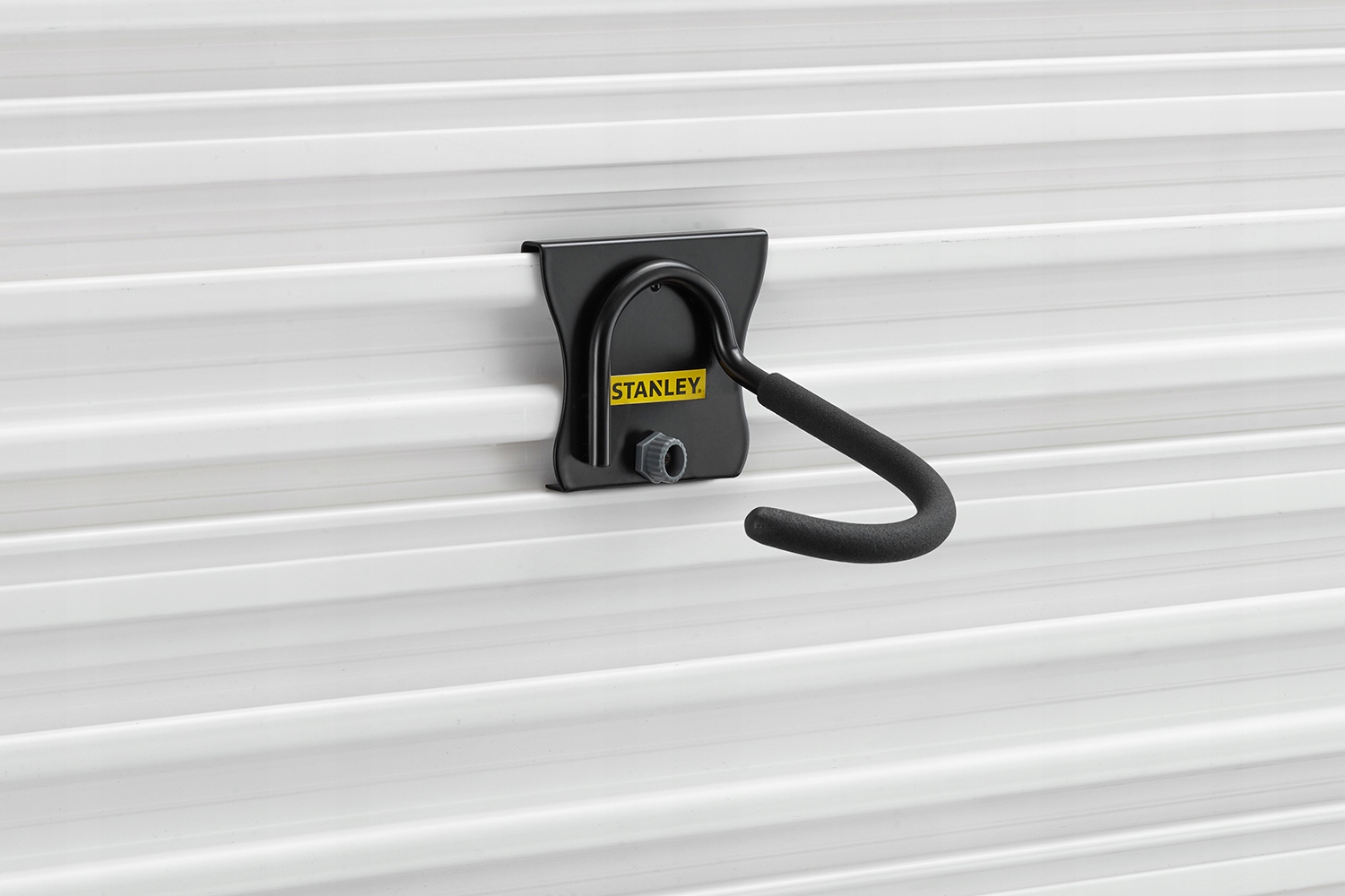 Завдяки інтегрованій стіновій системі Stanley® стіни доріжки, вертикальна система гачків для велосипедів дає можливість зберігати один велосипед у вертикальному положенні, піднімає його з підлоги і економить місце.