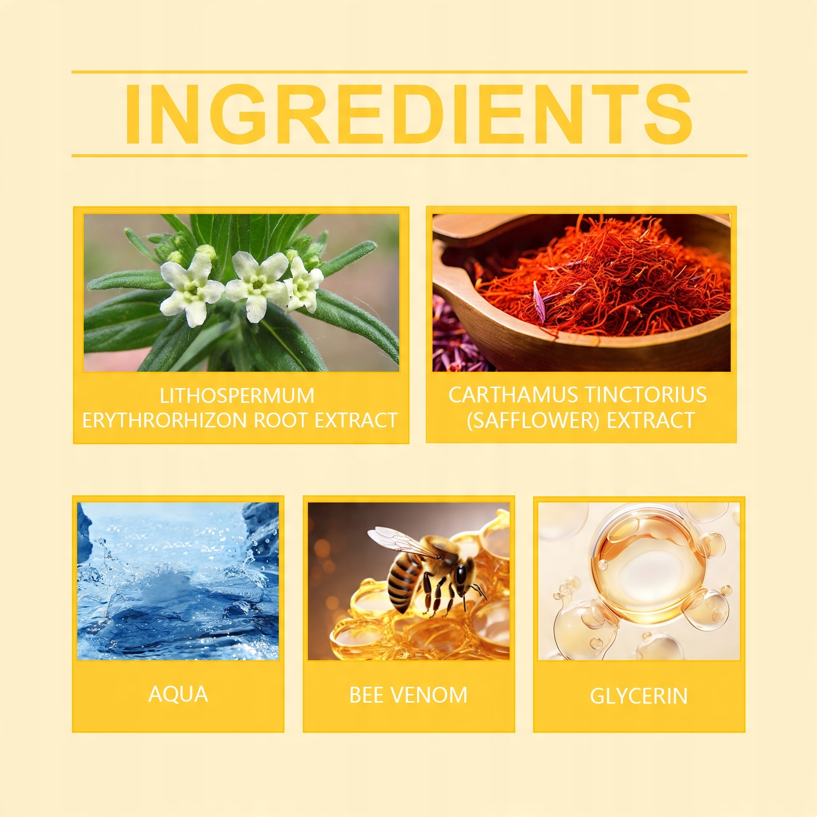 Наш крем для догляду за білими плямами Bee Venom містить гліцерин, бджолину отруту, екстракт Krokosz Barwierki.