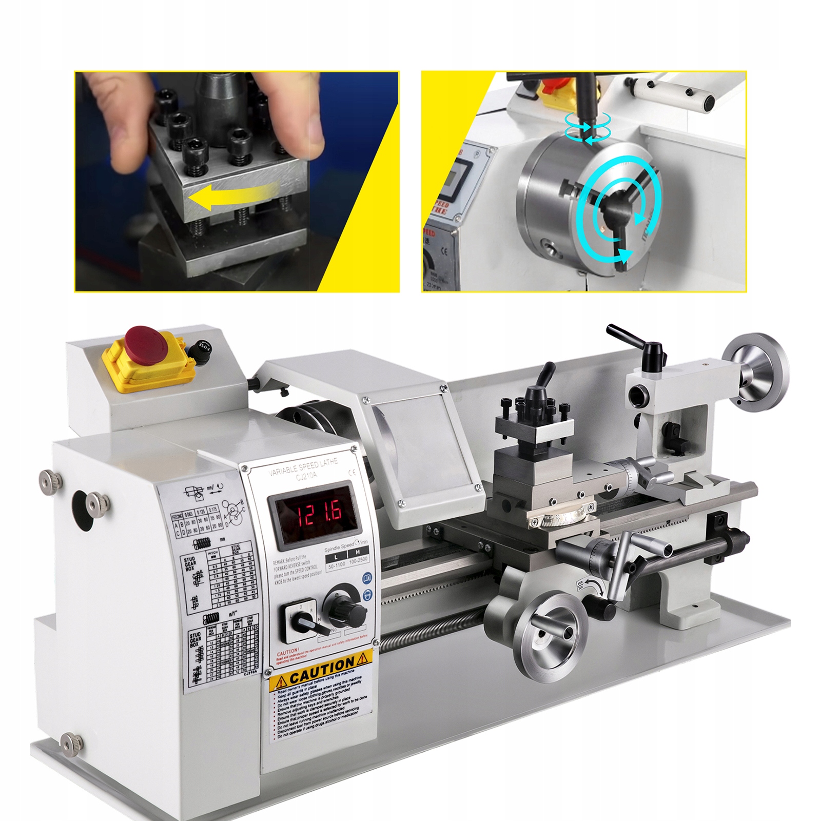 Міцна та міцна конструкція: міні-токарний верстат виготовлено з високоякісного чавуну, який стійкий до розривів та зносу. Він має двигун потужністю 650 Вт, який забезпечує велику потужність. Якщо вам подобаються трафарети, він стане вашим професійним помічником, він має точні метричні шкали та металеві шестерні, що робить його вибагливим.