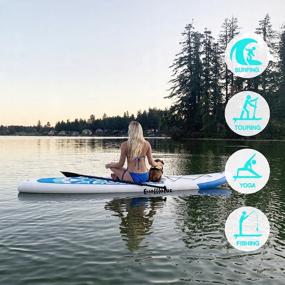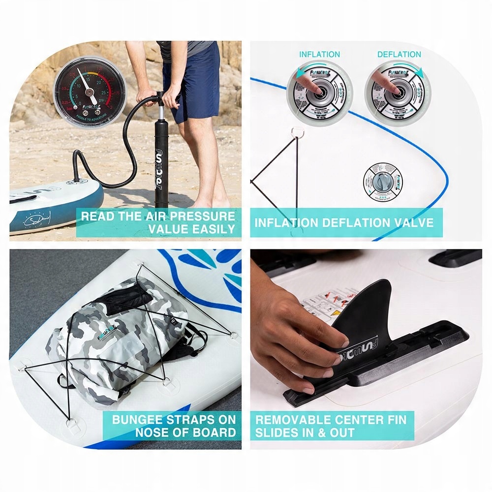Надувна довжина 11 дюймів, ширина 33 дюйми, товщина 6 дюймів, вага 17,6 фунтів, максимальна вантажопідйомність до 330 фунтів, стійка та для будь-якого рівня кваліфікації