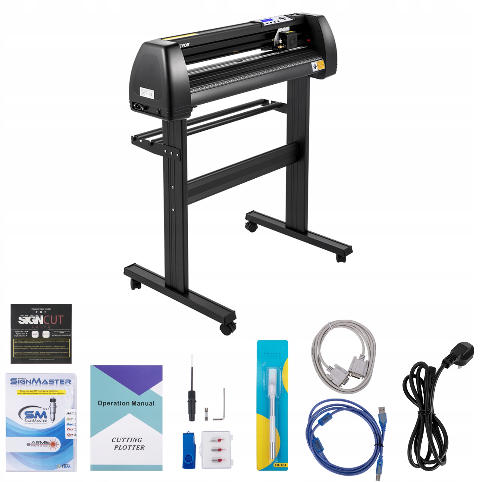 Цей штампування з повними аксесуарами для кращого використання. За допомогою програмного забезпечення Signcut та Signmaster, ручка леза, ручка ручки, флеш -пам'ять USB, кабелі (USB та серійний), живлення, запобіжник, три замінні леза та шестикутник.