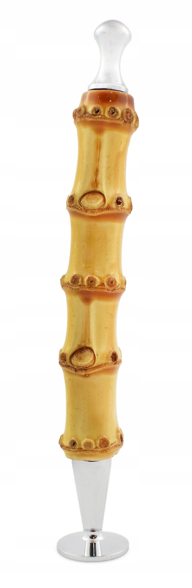 Трамбувальник труб Rattrays. Твердий і масивний. Надзвичайно оригінально та елегантно виглядає різьблена бамбукова вставка в поєднанні з блискучими хромованими елементами. Ідеально очищає будь-які забруднення. Він також ідеально підходить як тютюновий тампер. Чудовий подарунок для кожного курця та колекціонера трубки.