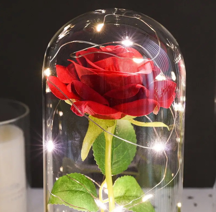 Вічна троянда в склі - символічний подарунок, який стосується довговічності почуттів і красунь, які не проходять. Ця ідея вбудована в той факт, що штучна троянда не є в'язням, не втрачає своєї форми чи кольору, зберігаючи свою первісну красу назавжди. - це метафора довговічності любові та зобов'язань.