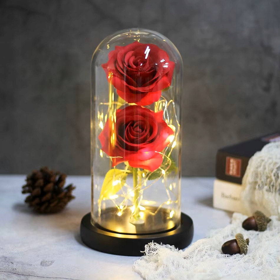 Вічна троянда в скляній світильній світлодіодах на батареї Подарункова ідея День матері