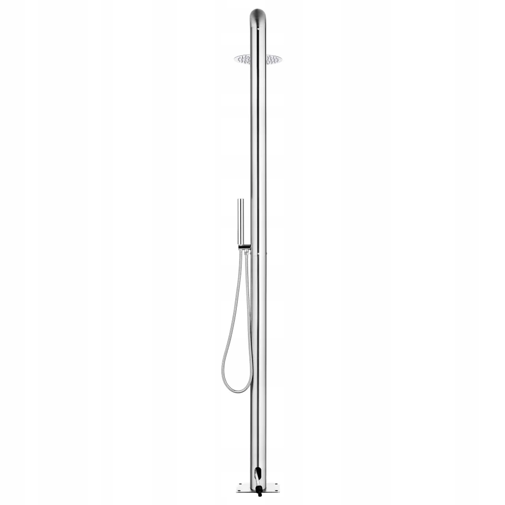 Садовий душ із сучасним дизайном стане чудовим доповненням до вашого басейну та інших відкритих майданчиків. Цей душ виготовлений з нержавіючої сталі, що робить його стійким до погодних умов. Система включає в себе тропічний душ і душову насадку для задоволення ваших потреб у садівництві, поливі та купанні. Ручна душова лійка кріпиться до гнучкого шланга з подвійним закриттям, який також оснащений латунним тримачем. Міцна та стійка до корозії основа виготовлена з WPC найвищої якості та обрамлена нержавіючої сталлю з матовою обробкою, що забезпечує довговічність протягом багатьох років використання. Він також пропонує найвищий рівень гігієни, що робить його ідеальним для вашого зовнішнього простору. Завдяки своїй довговічності та універсальності цю підставку для душу також можна використовувати як платформу для сходів до басейну. Пориньте під справді розслабляючий душ і насолодіться сучасним стилем цього прекрасного садового душу!