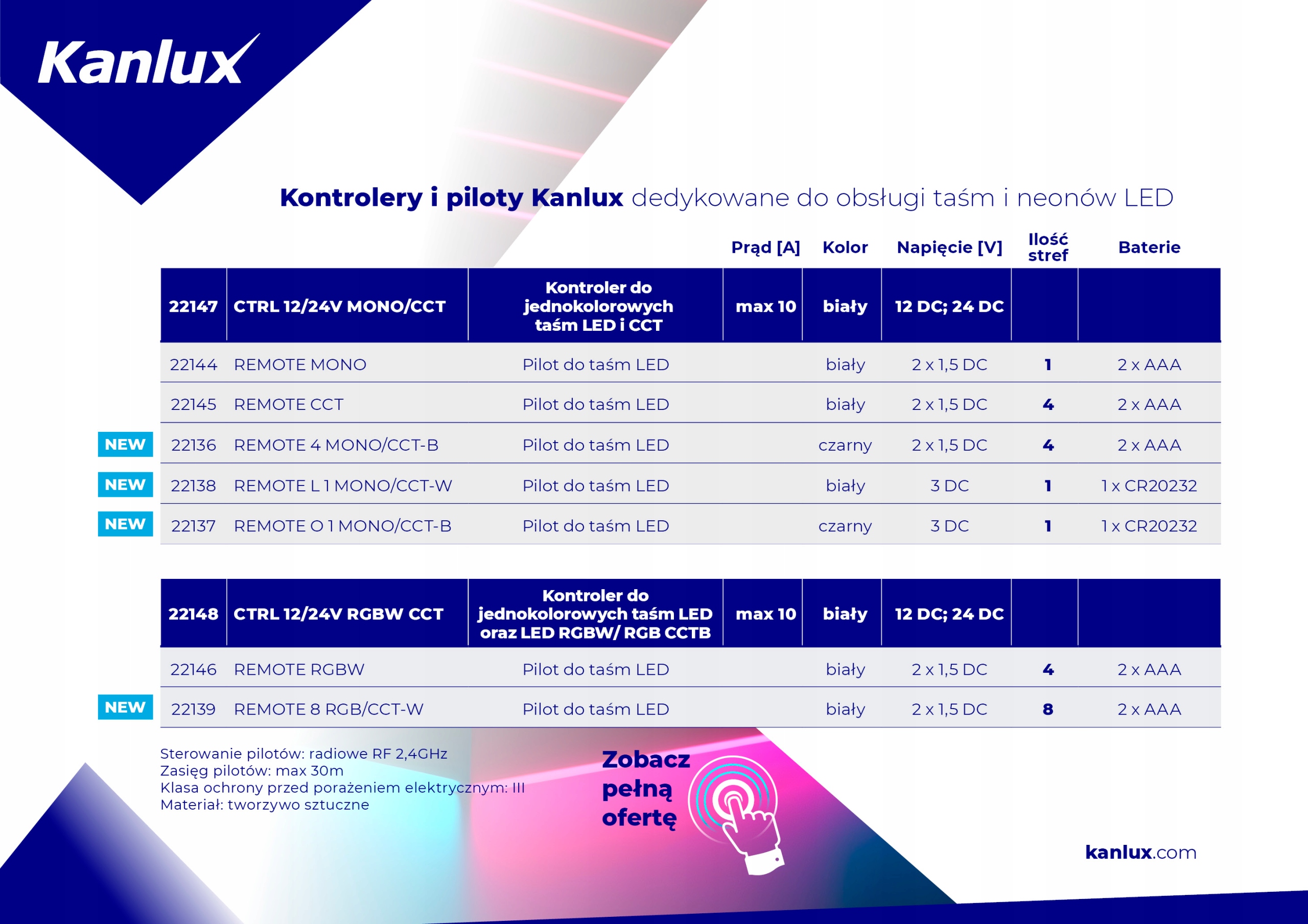Віддалений контроль для світлодіодних CTRL -смужок Kanlux 12/24V моно/CCT