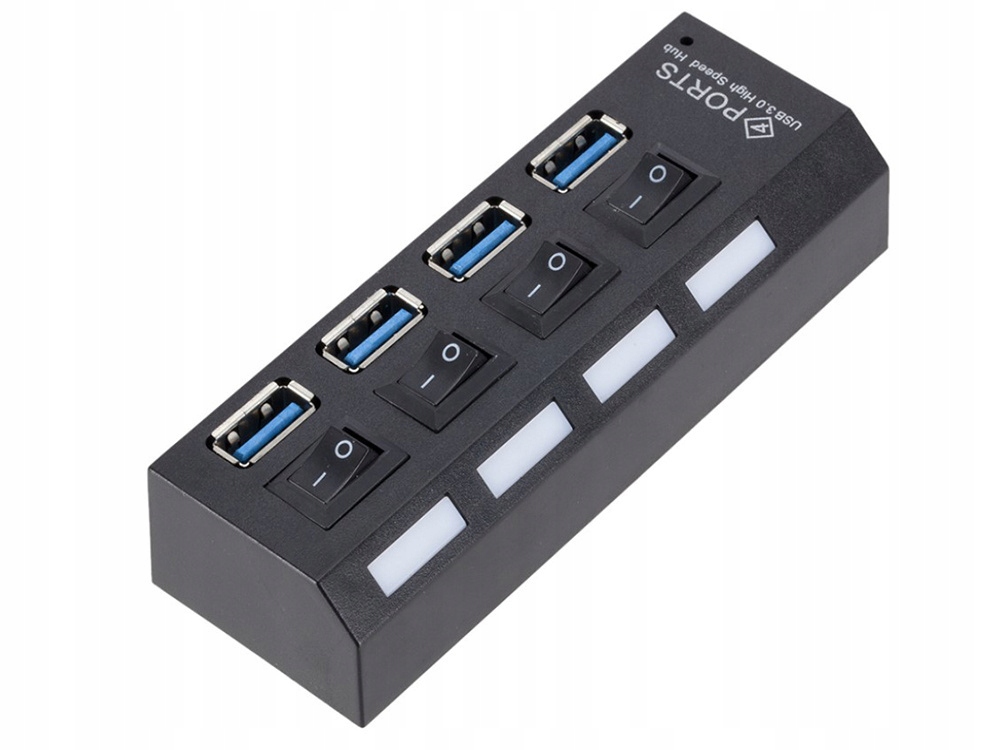 дистриб'ютор для 4 USB -портів , підключений до комп'ютера для збільшення кількості портів USB. Стандарт передачі даних 3.0 гарантує швидку передачу даних до 5 ГБ/с . Кожен порт оснащений перемикачем увімкнення/вимкнення , який полегшує роботу і дозволяє використовувати USB -пристрої в будь -який час.