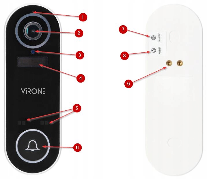 Бездротовий дзвіночок VIRONE VDB-1 має передавач (Video Bell) та приймач дзвону. Завдяки підключенню Wi -Fi та програмі tuya smart (для мобільних пристроїв) можна керувати пристроєм та провести розмову з людиною зовні.