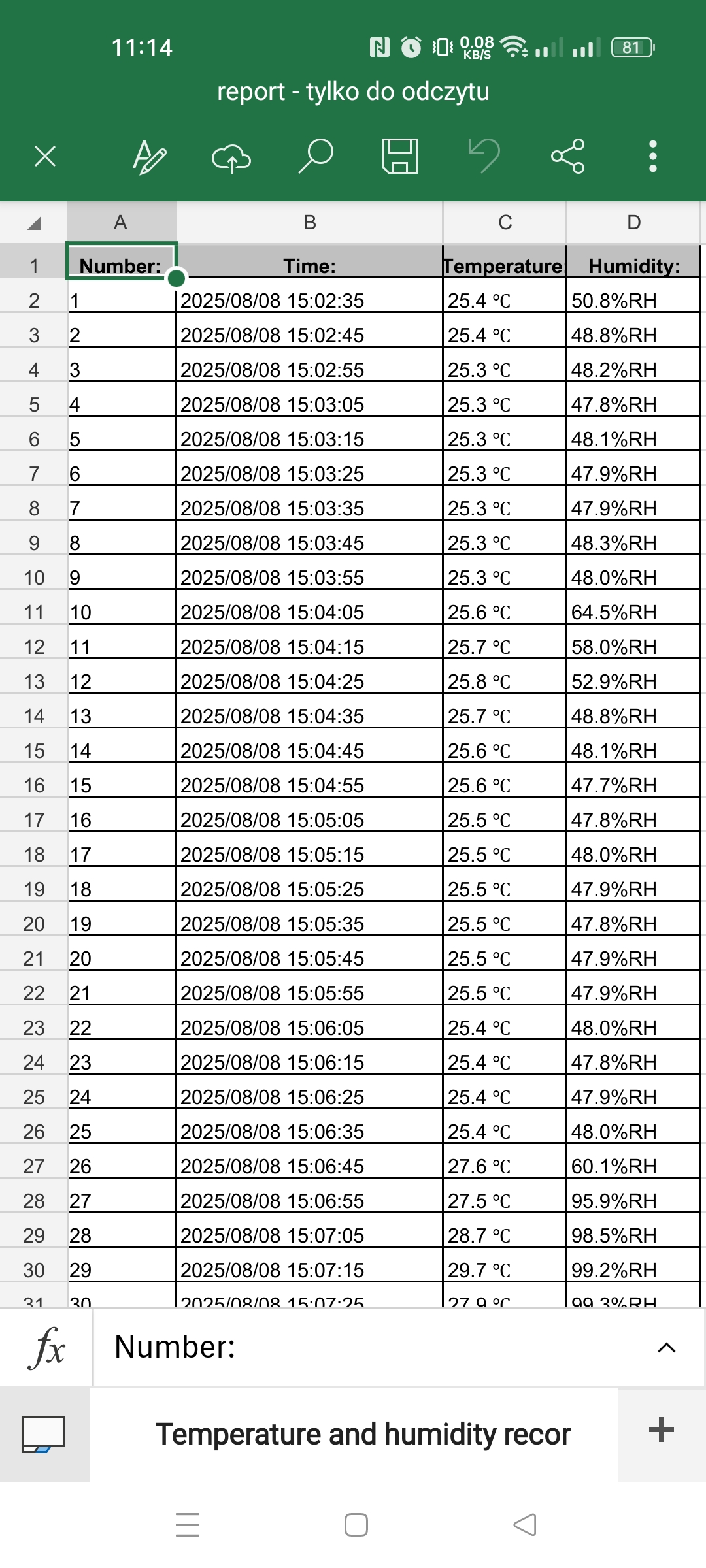 - Measuring range: -40 ... 85 ° C , humidity: 0%... 100%Rh
