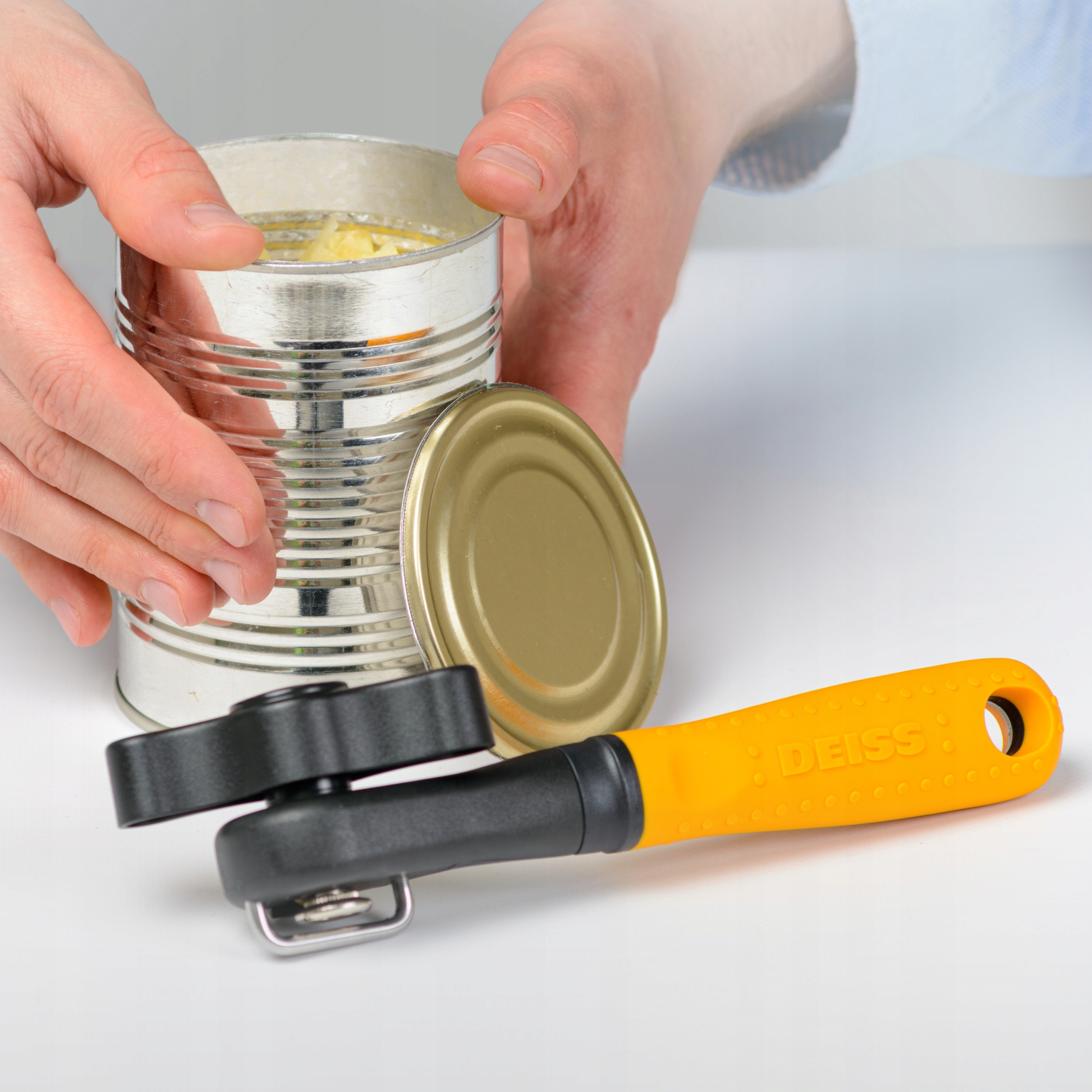 - ГОСТРЕ ЛЕЗО З НЕРЖАВІЮЧОЇ СТАЛІ: ручна відкривачка для консервів Deiss має чудове лезо з нержавіючої сталі, яке легко розріже будь-яку консервну банку. Відкривачка для консервів стійка до іржі та надійно служитиме вам роками.