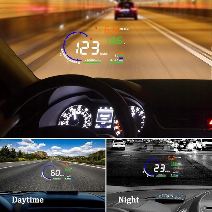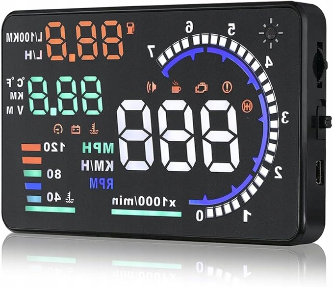 Цей головний дисплей розроблений для універсального використання в автомобілях і забезпечує проекцію швидкості автомобіля з високою роздільною здатністю на лобовому склі. Завдяки портативному екрану автомобіля A8 ви можете зосередитись на дорозі, усвідомлюючи свою швидкість, що збільшує безпеку та комфорт водіння.