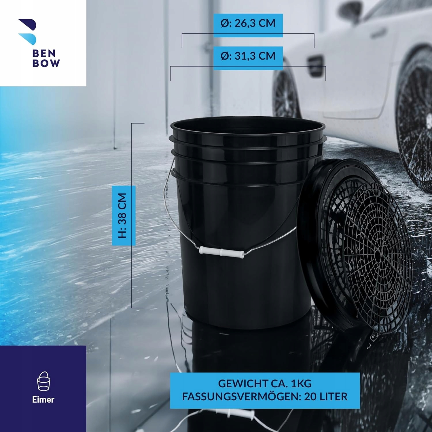 BenBow Wiadro do mycia 20 litrów z sitkiem na brud i pokrywą wiadra - czarn