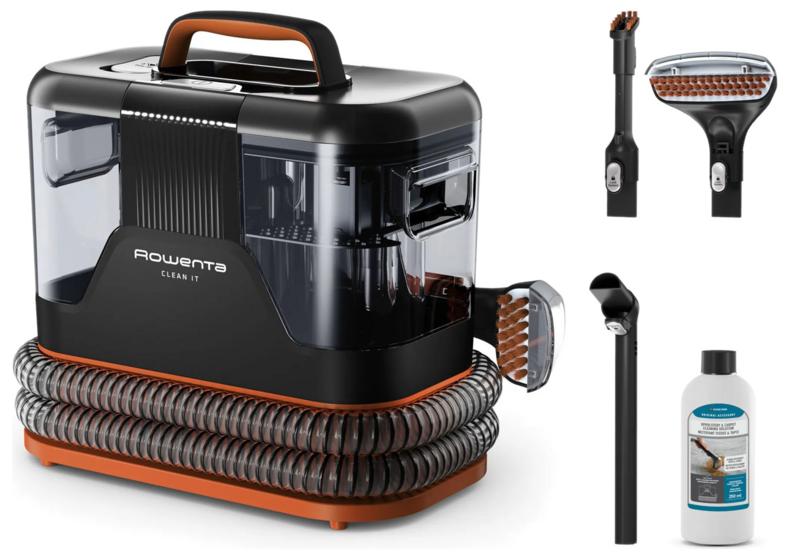 - Виробник): У упаковці ви знайдете: пилосос, щітка 8 см, щітка 15 см, щілина сопла, автоматичний кані-аксесуар, 250 мл очищення розчину для оббивки та килима, скороченого користувача