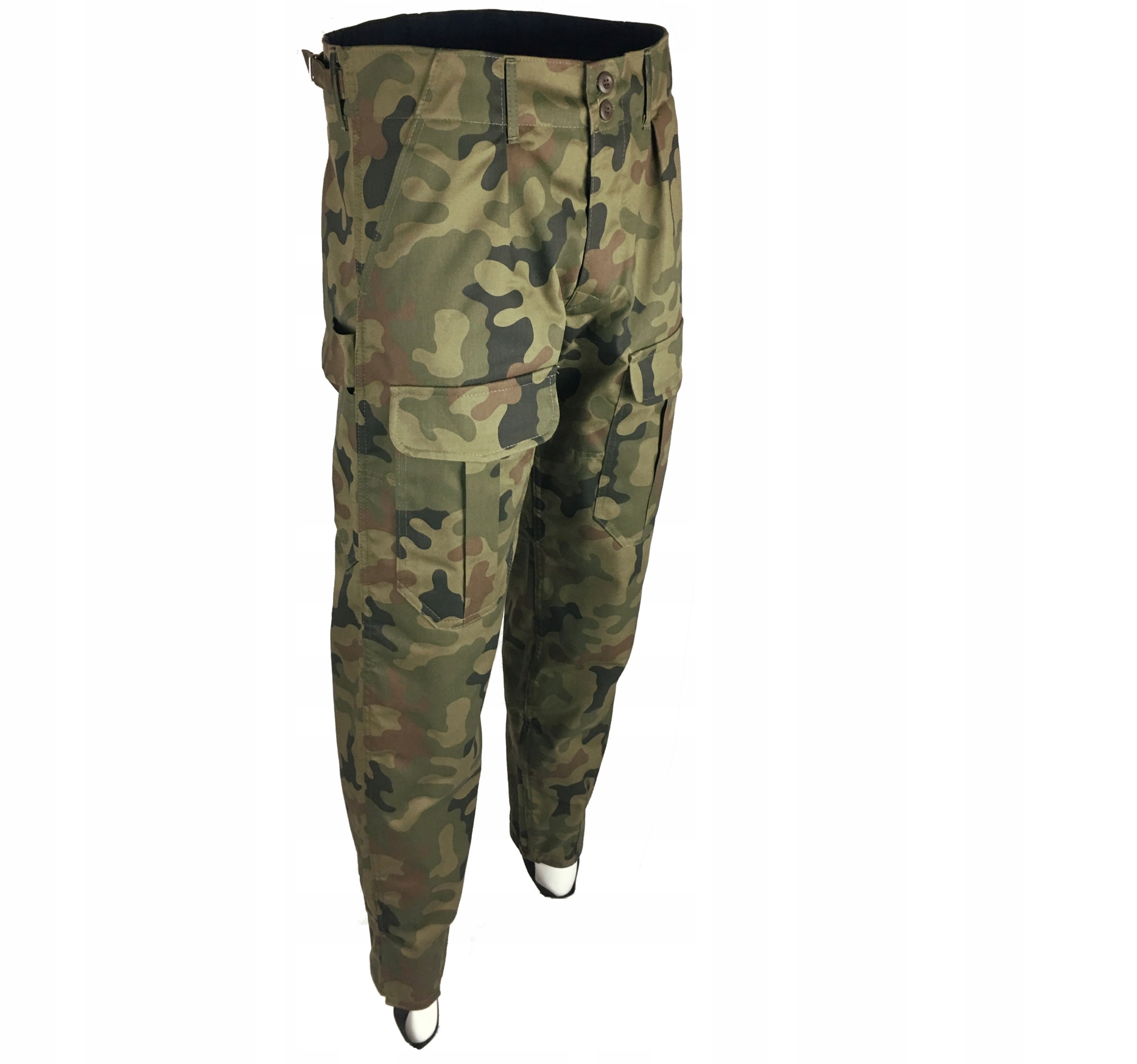 Виготовлені в Польщі польським виробником з форменної тканини US 18 з переплетенням 70% бавовна30% поліестер Комбінація двох волокон дає штани з високою стійкістю до стирання та розривів Штани класичного стилю мілітарі Звужені штанини, оброблені еластичною стрічкою, а на стегнах є 2 зовнішні кишені застібаються на ґудзики.Клачка брюк також застібається на ґудзики. Шлевки адаптовані до широких ременів. Вони ідеально підходять для армії, скаутингу, служби безпеки, виживання, а також для щоденного використання.