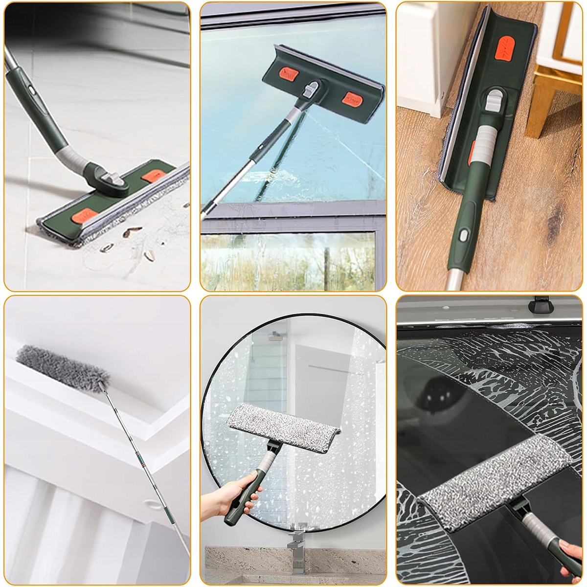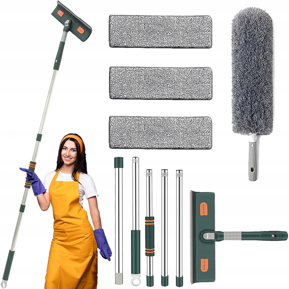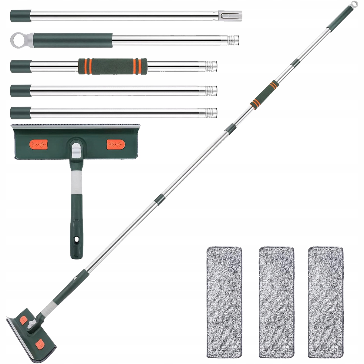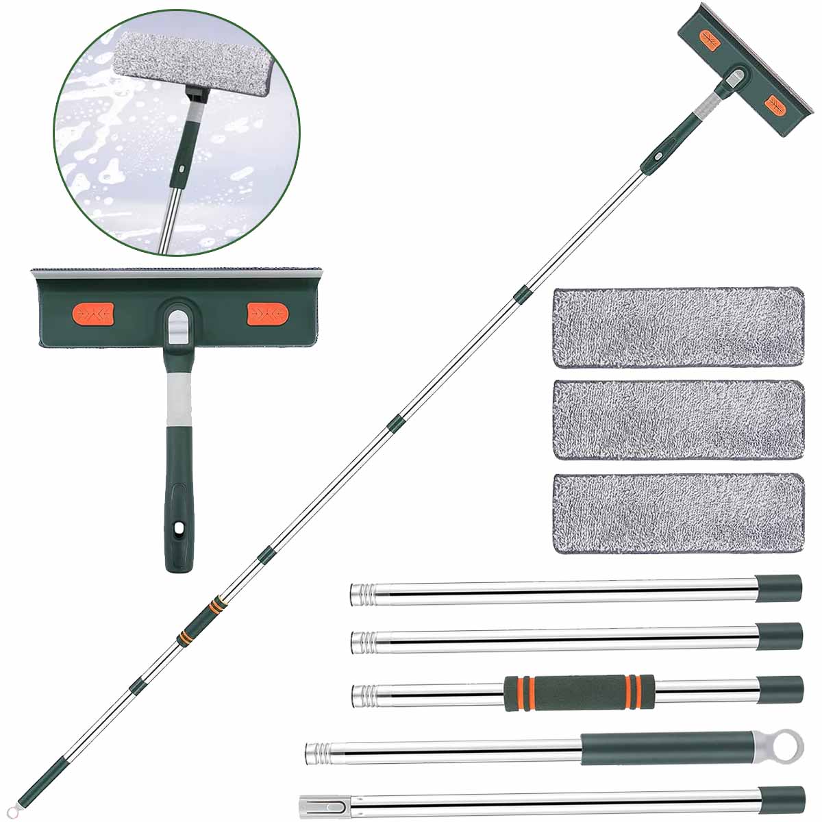 ⭐ 【fensterputzer set】 widd mit 5 teiligen edelstahlstangen geliefert, die nicht leicht rosten und brechen, und 3 mikrofaser-pads (ein großartig saugfähigen tuch, das überssususighsgesser). 1 Faser-Staubwedel-Aufsatz Entfernt Mühelos Schmutz, Staub und Dreck Aus Engen Ecken.