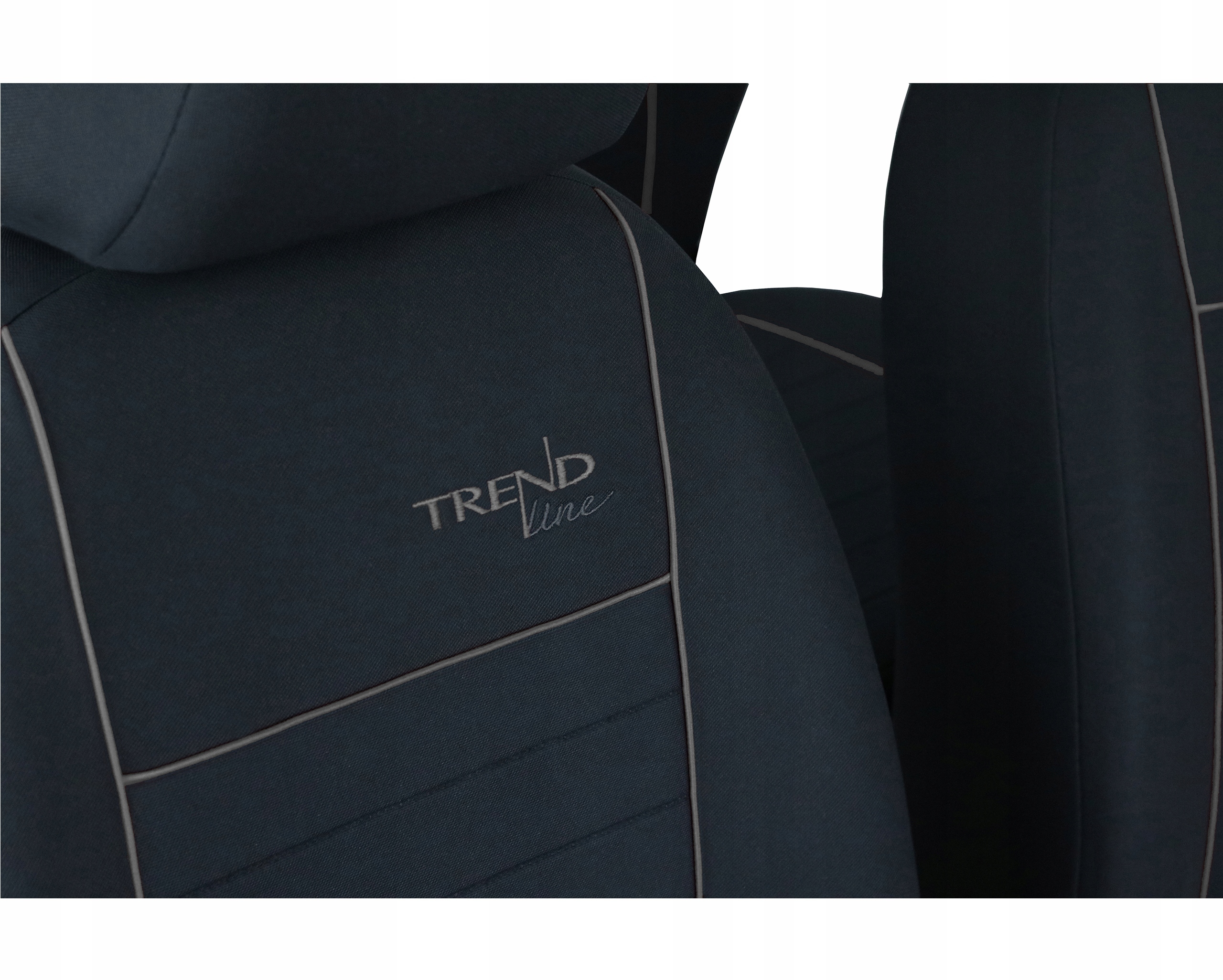 Звичайні чохли TREND LINE виготовлені з оббивної тканини попелястого кольору - новинкою в пропозиції є рельєфна фактура матеріалу, використаного для середньої смуги. Перевагами даного виду тканини, крім естетичних цінностей, є також краща циркуляція повітря, що підвищує комфорт використання. Між стиками матеріалів використовується кант, що значно підвищує довговічність виробу. Крім того, можливість вибору кольору надає обкладинкам індивідуальний характер.