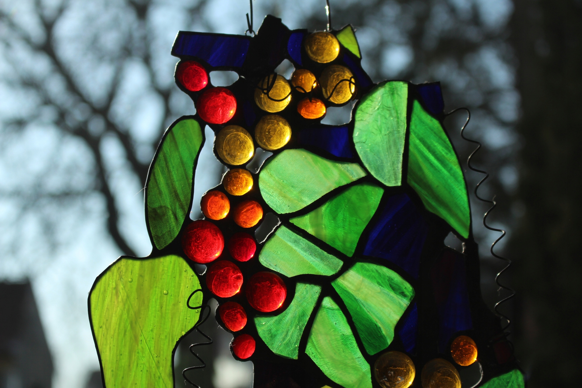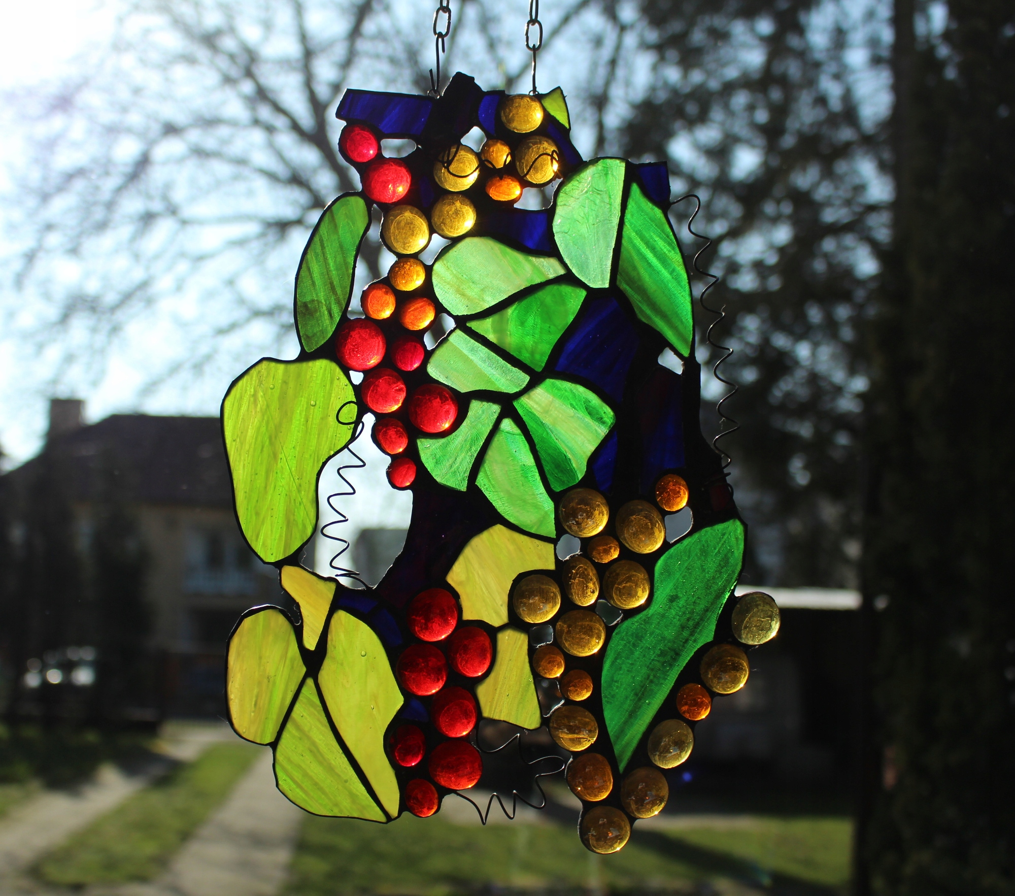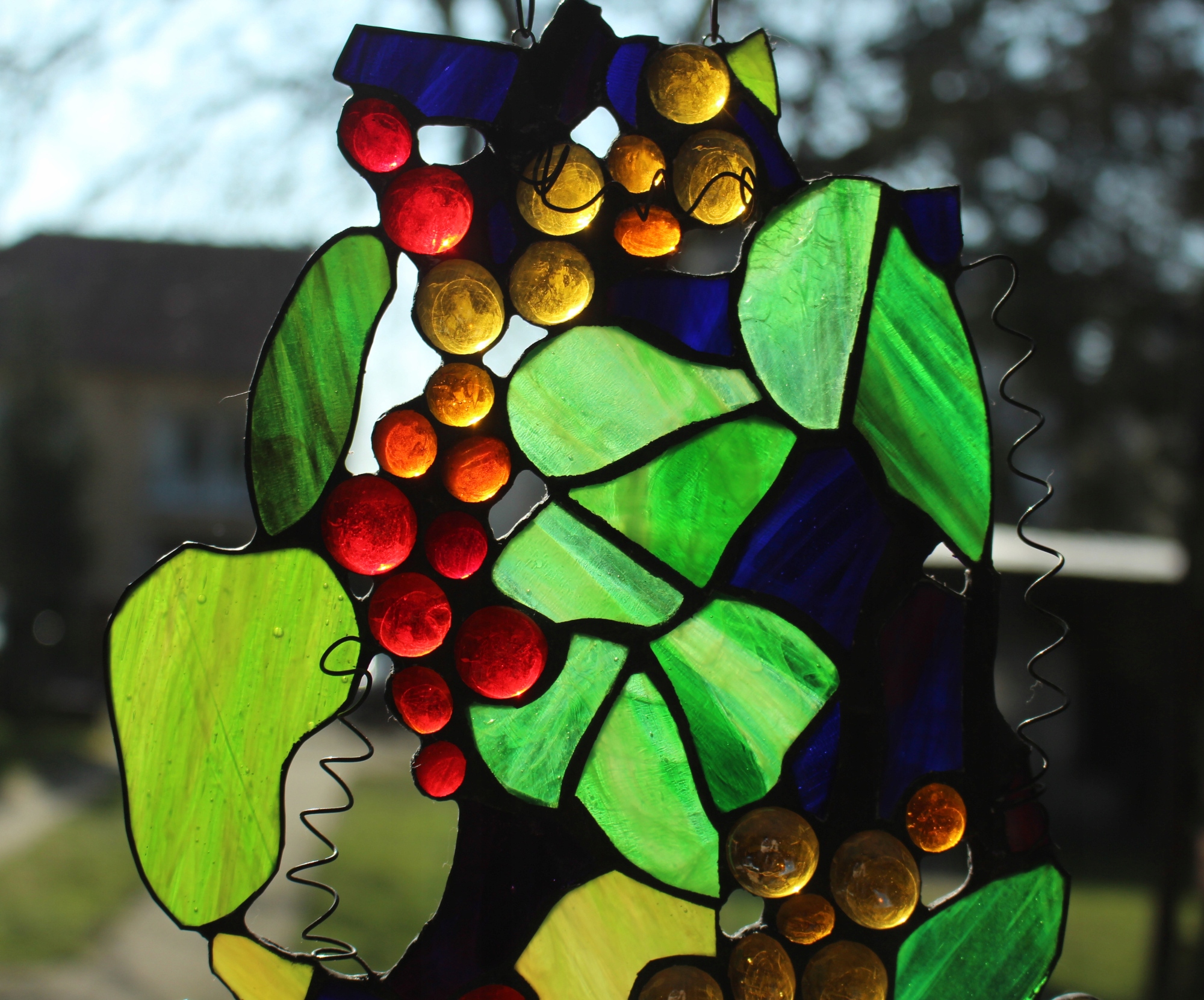 Вітраж Тіффані виноград, червоний виноград, старовинний скляний виноград9