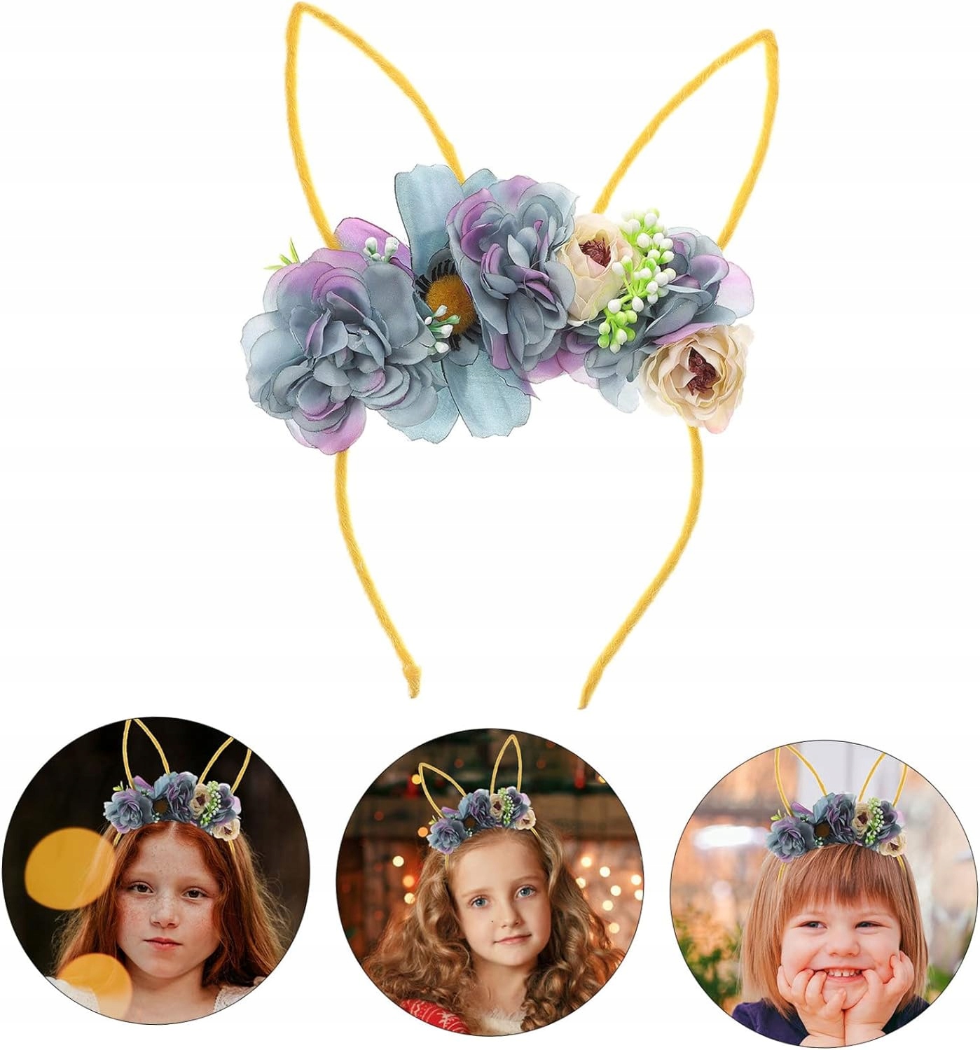 ВІНОК ПОВ'ЯЗКА КВІТИ КОЛЬОРОВІ СИНІ РОЖЕВІ ВУШКА КРОЛЯ