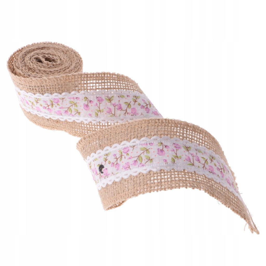 Вінтажна гессенська стрічка джутова стрічка з друкованими квітами DIY Craft 2 м рожева