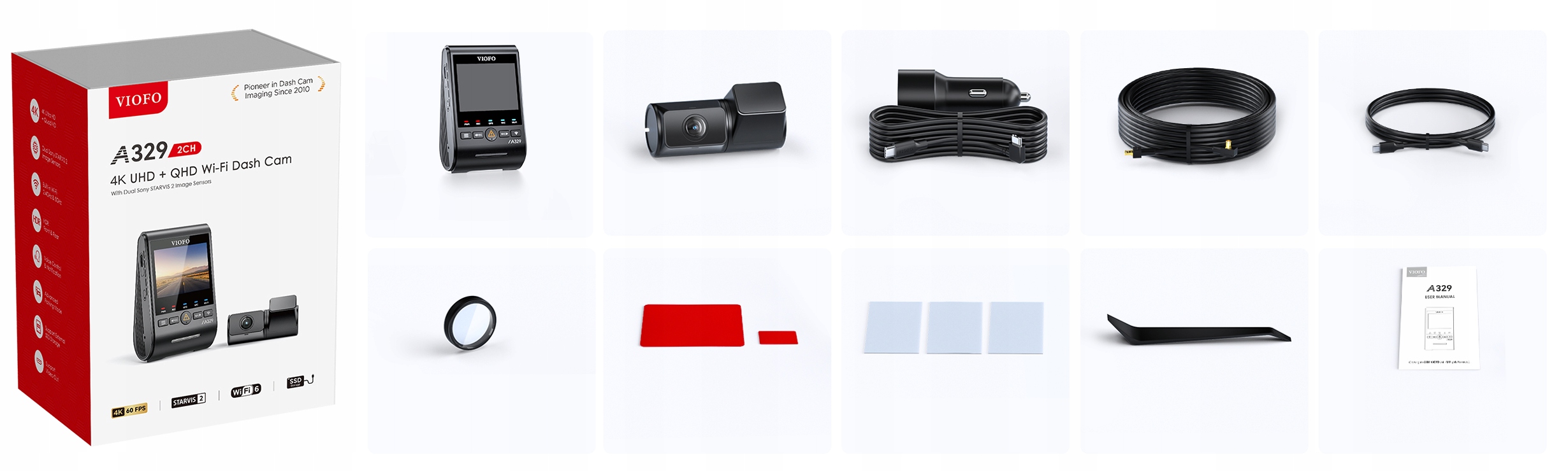 VIOFO АВТОМОБІЛЬНА КАМЕРА 4K+2K 60KL/S A329 2CH HDR GPS WIFI SONY STARVIS 2