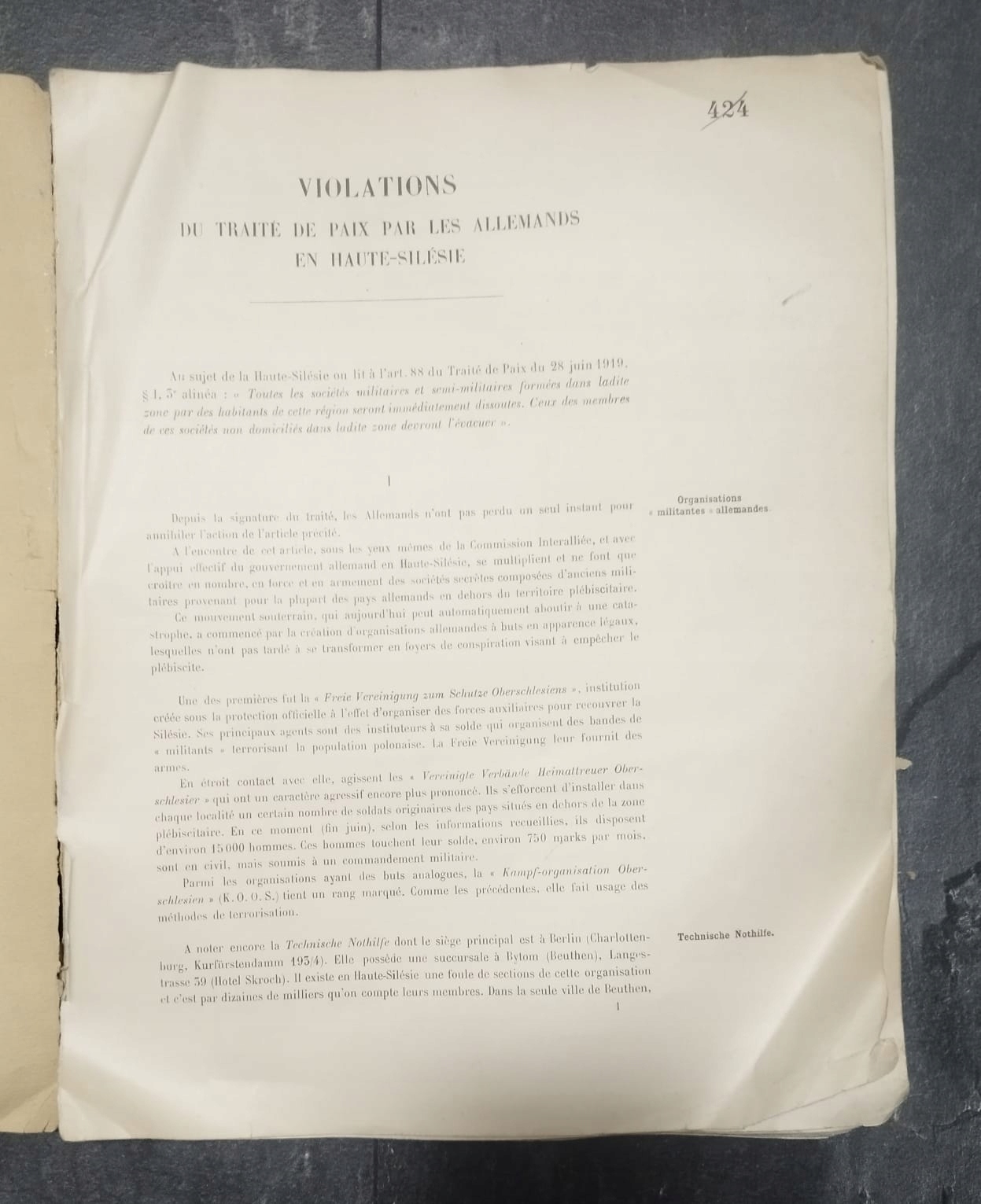 Violations du traité de paix par les allemands en Haute-Silésie 1920 Śląsk