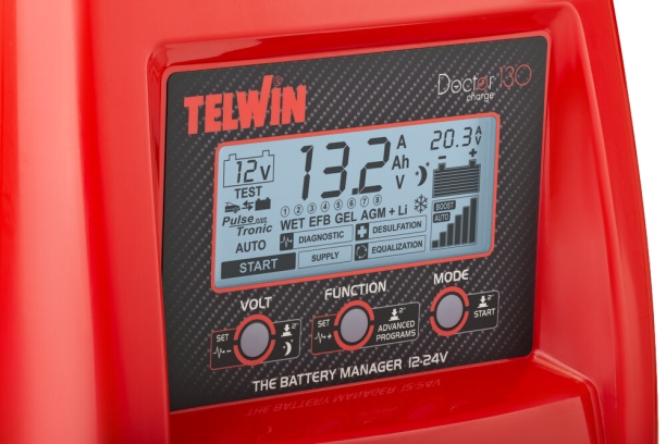 DOCTOR CHARGE 130 12/24V є багатофункціональним, електронний випрямляч з технологією POWER STREAM для комплексного обслуговування акумулятора тип:
