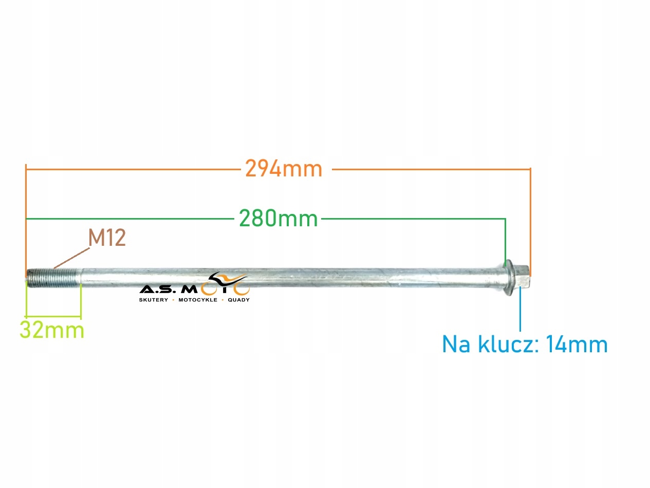 Вісь, задня поворотна вісь M12 x 280 мм квадроцикл, квадроцикл, мотоцикл, мопед Benzer,