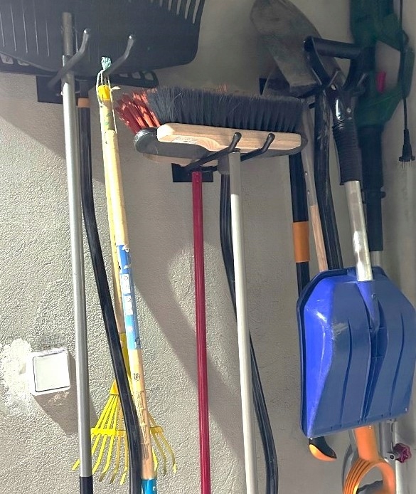 ▶ Вішалка використовується для підвішування садових інструментів, таких як лопати, лопати, граблі тощо. Вона призначена для підвішування кількох інструментів . p>