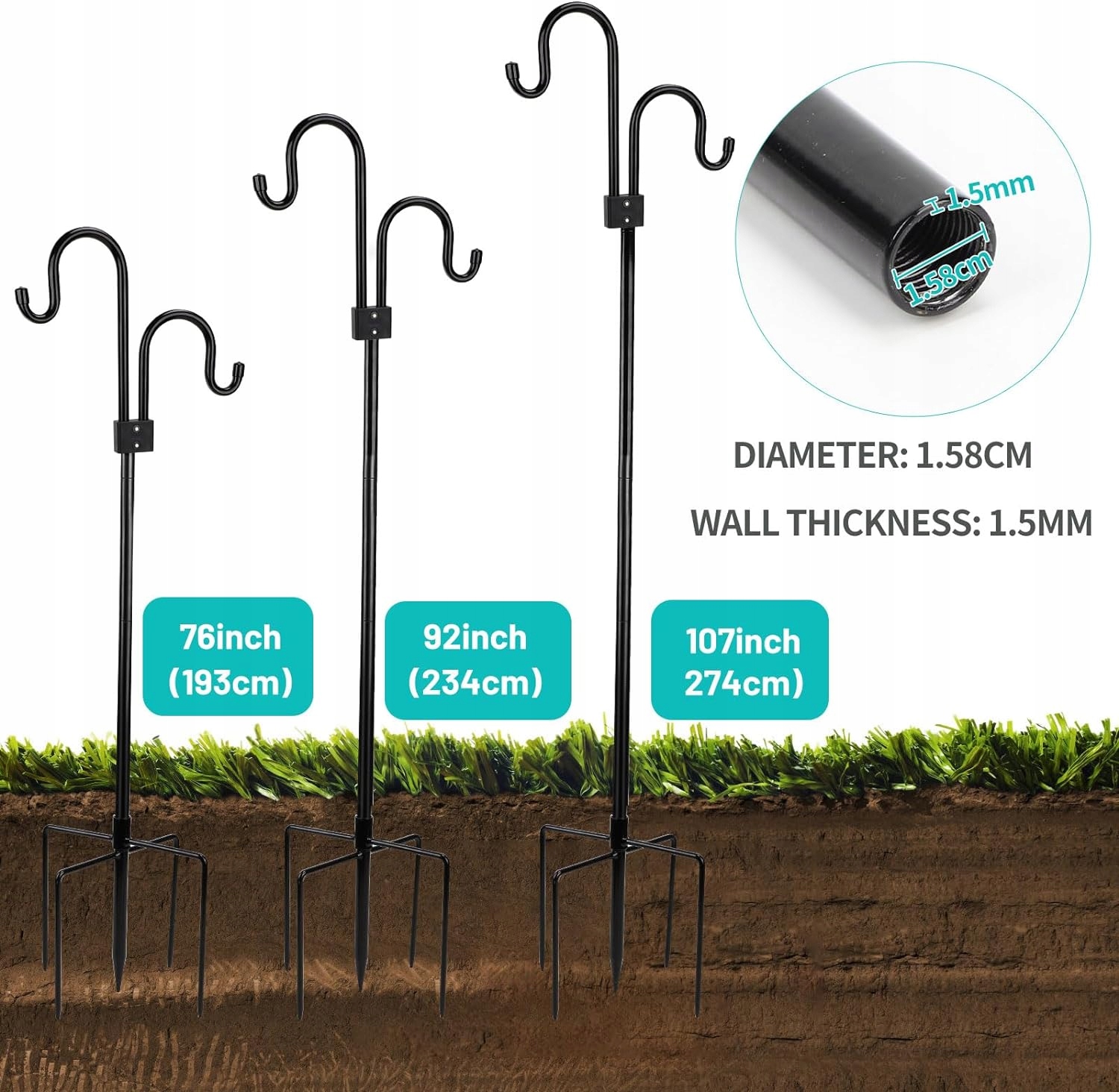 Завдяки своїй вражаючій висоті наша вішалка для садових квітів дозволяє підвішувати рослини на різних рівнях, що додає глибини та цікавого візуального ефекту вашому сад. Ви можете створити чудові квіткові композиції, які порадують ваших гостей і додадуть шарму вашому відкритому простору.
