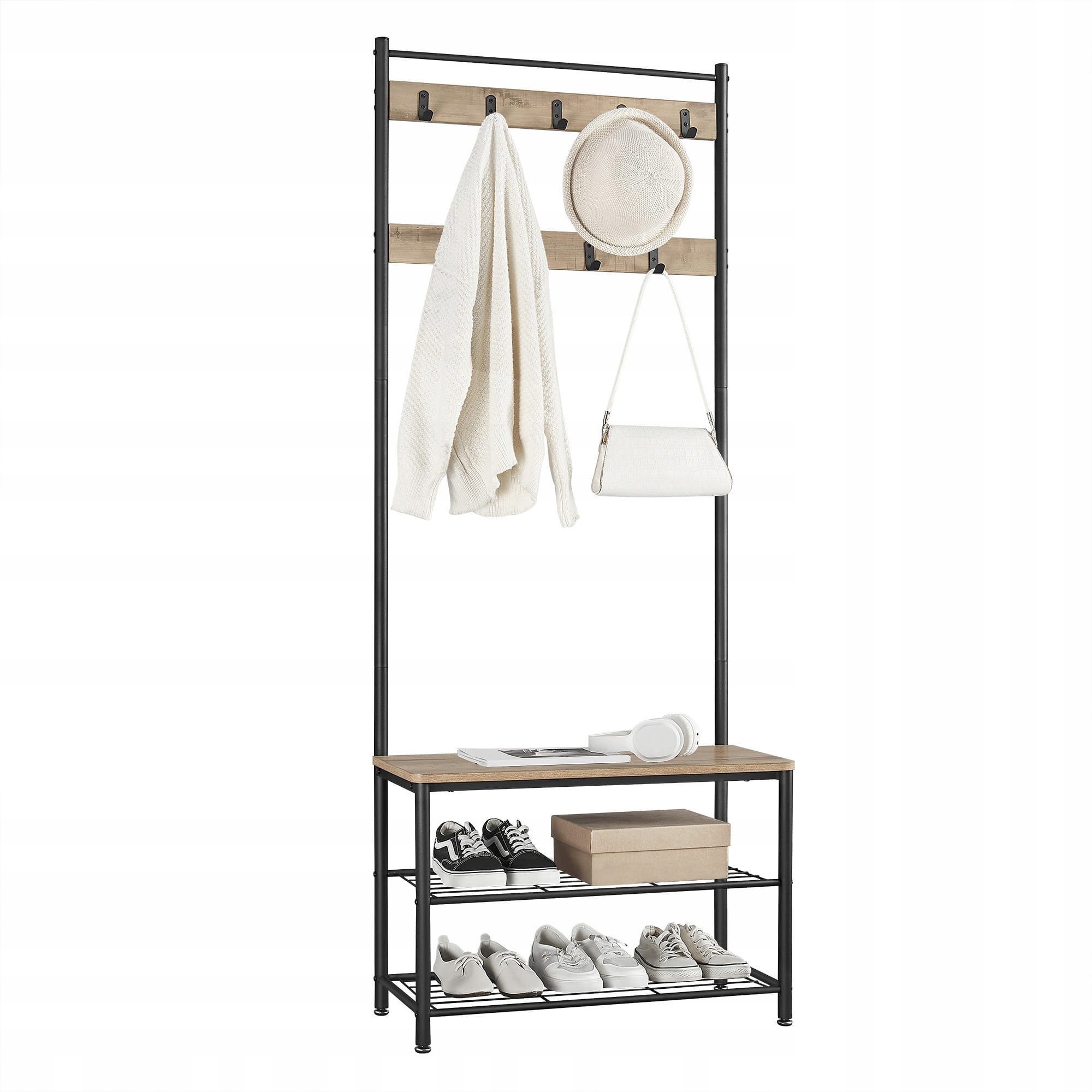 Елегантна вішалка для одягу з полицею для взуття в модному стилі лофт, рустик.