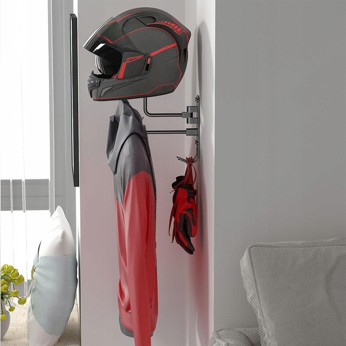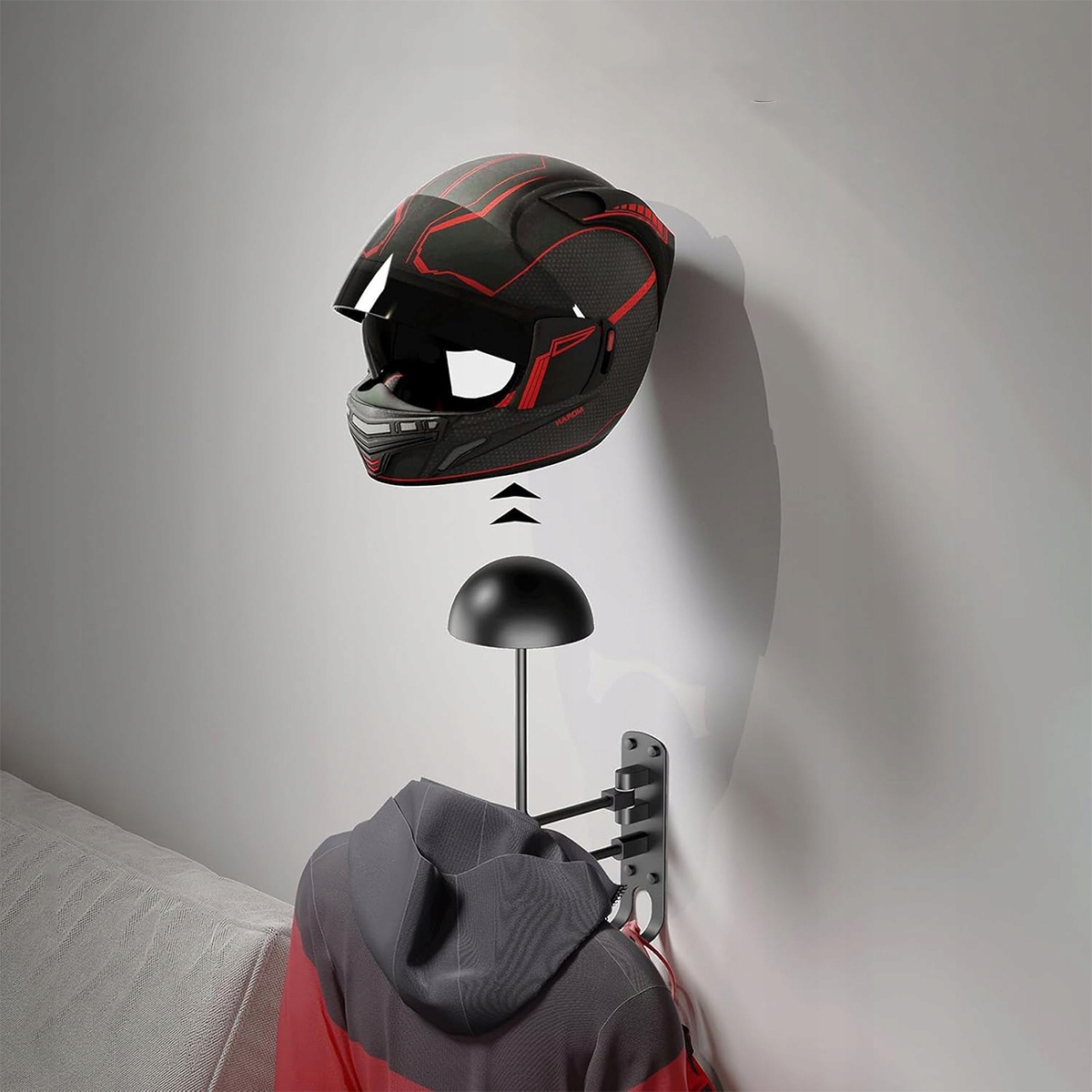 - 【Ідеальне доповнення до мотоцикла】 Багатофункціональний тримач шоломів призначений для зберігання різних головних уборів, таких як мотоциклічні шоломи, шоломи для бейсболів, шоломи для баскетболу, захисні шоломи, шапки, а також пальто, ключів, ключів тощо. Ідеально для будинку, офісу, літа. Це покращує використання простору та забезпечує більший порядок та організацію.