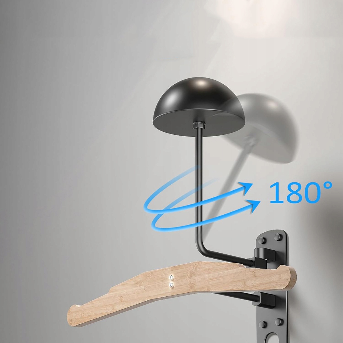 - 【повернення 180 градусів】 Власник стіни нашого гачка на шоломі може вільно обертатись на 180 градусів, щоб адаптувати його місцезнаходження до ваших потреб. Коли ручка не використовується, її можна повернути до стіни, тим самим зберігаючи місце. 4