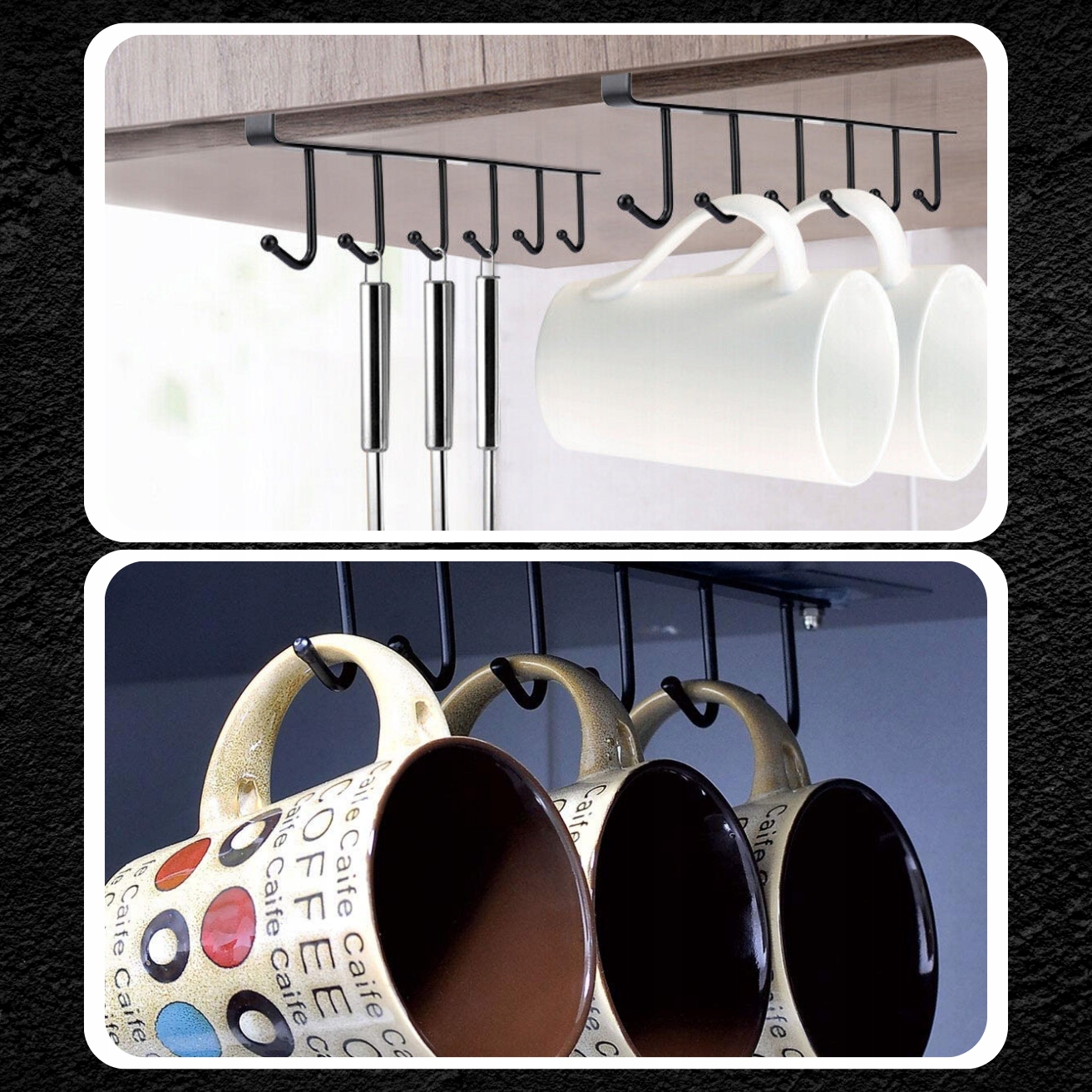 Вішалка-тримач під кухонну шафу для чашок, гачки без свердління, чорний